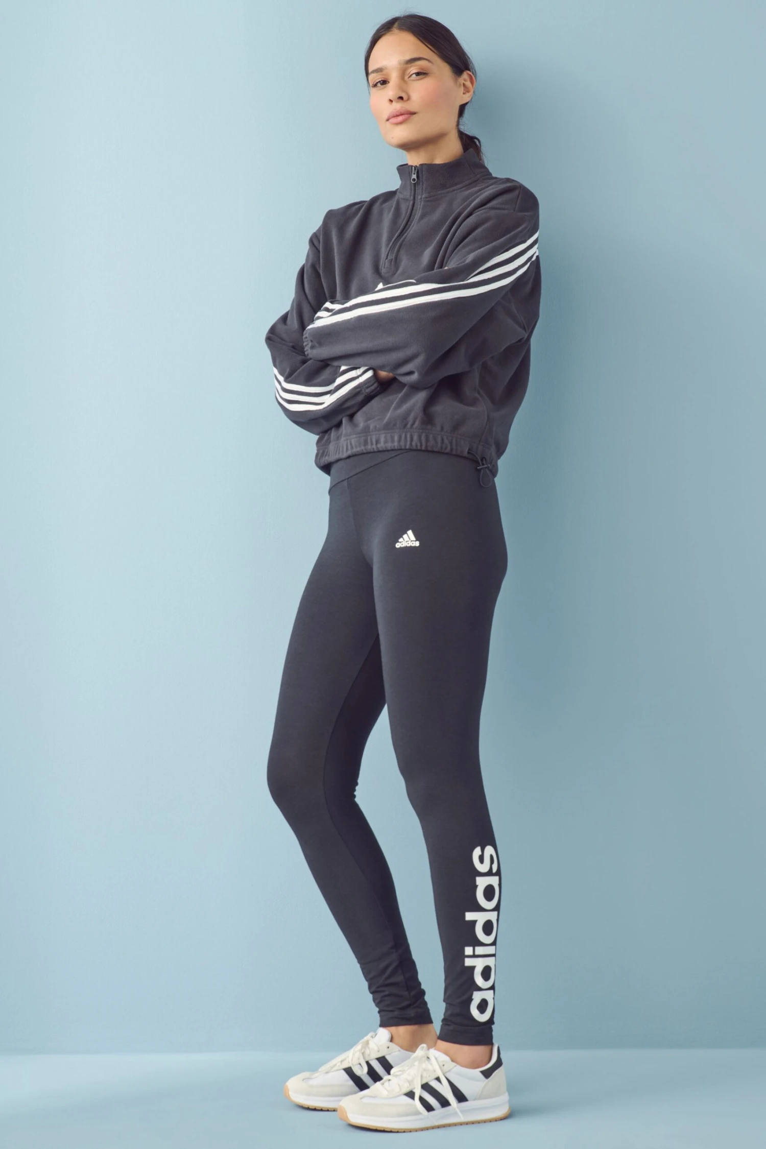 A wardrobe staple that’s crafted for comfort. Clean and simple, the minimalist look of these adidas leggings is given a sporty twist with a linear logo on one leg. A high-waisted fit provides street-ready style. adidas’ cotton products support sustainable cotton farming. This is part of their ambition to end plastic waste.