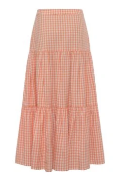 Apricot Retro Floral Shirred Waist Skirt