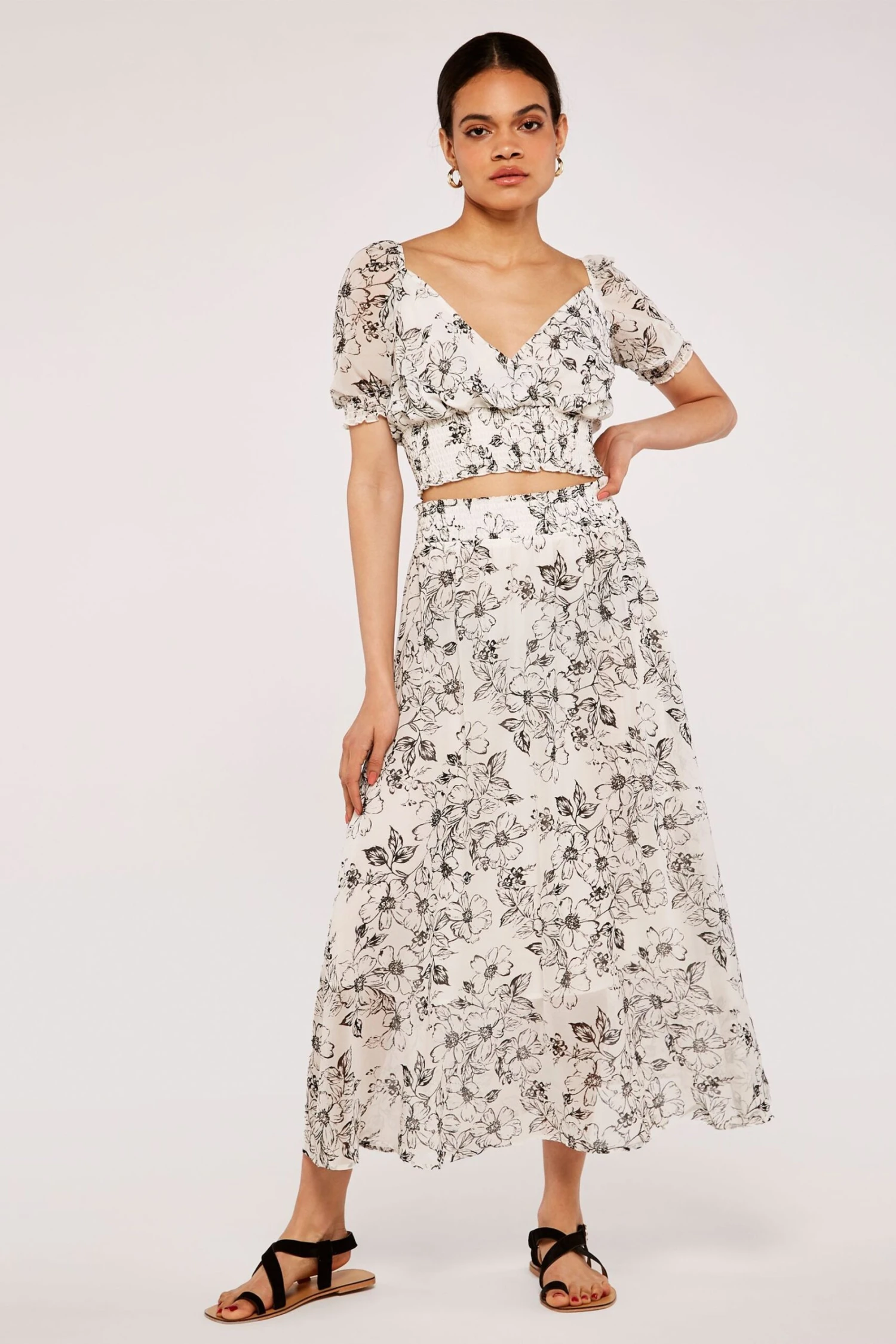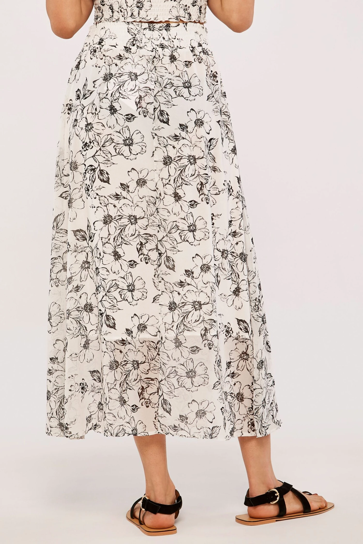 Retro Floral Shirred Waist Skirt.