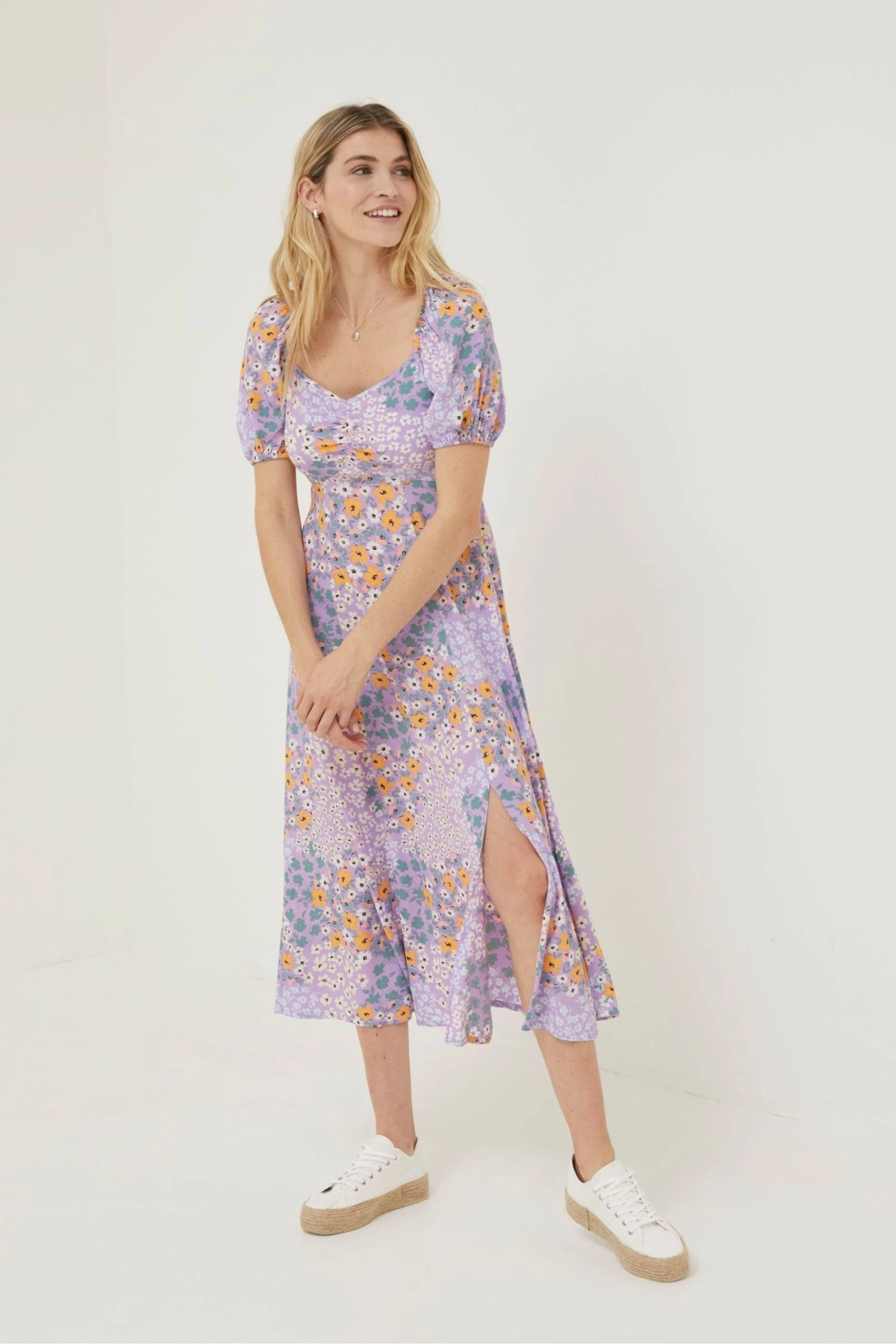 FatFace Purple Tania Meadow Midi Dress