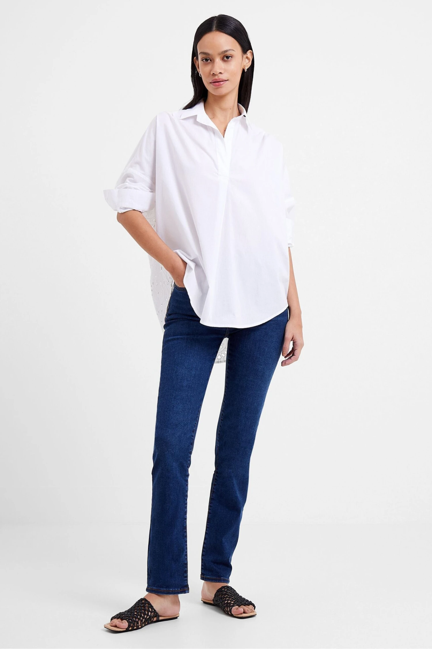 French Connection Appelona Anglaise White Popover Blouse