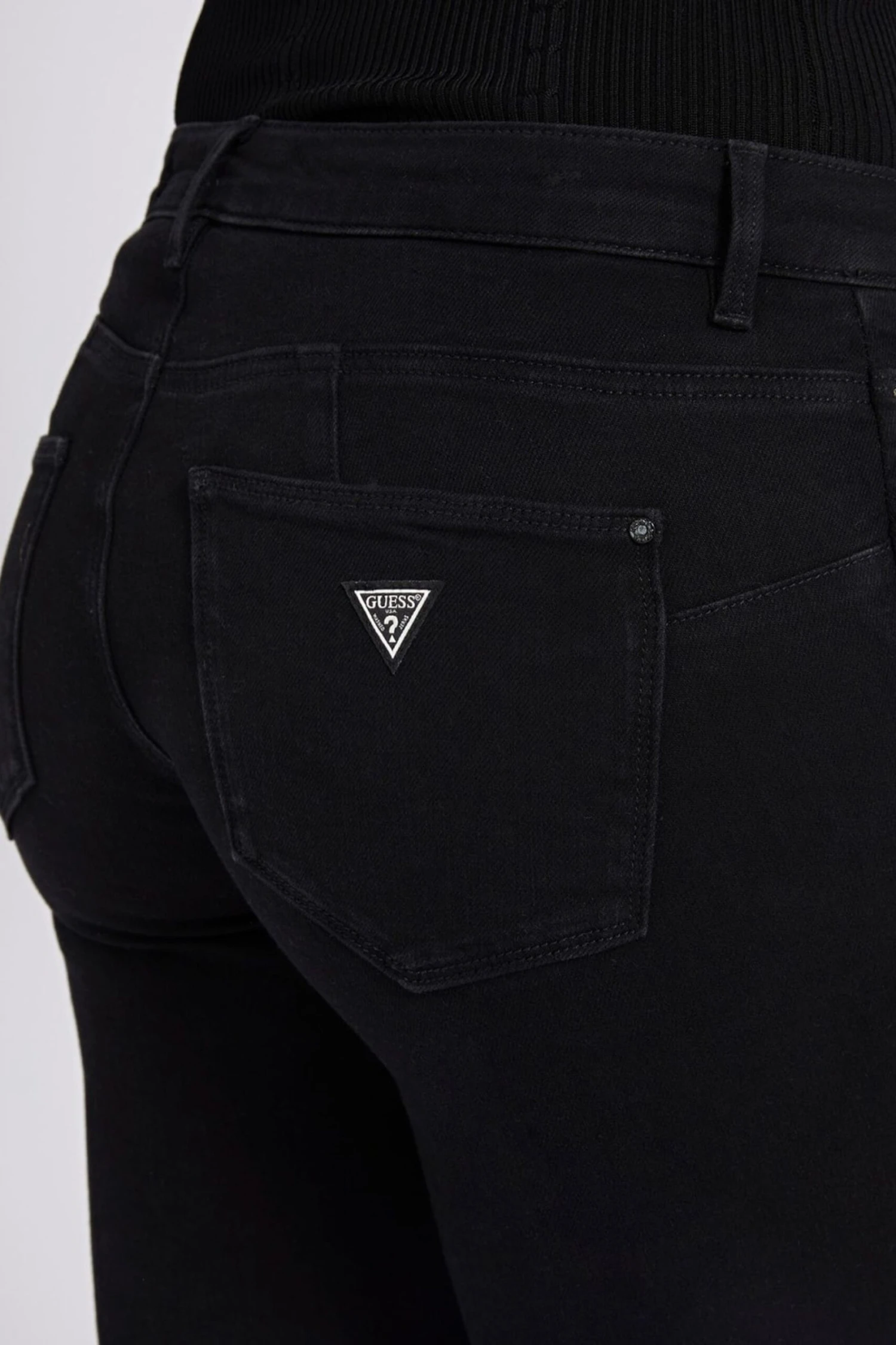 A skinny five-pocket jeans with a cleverly sculpted shape to flatter the figure.