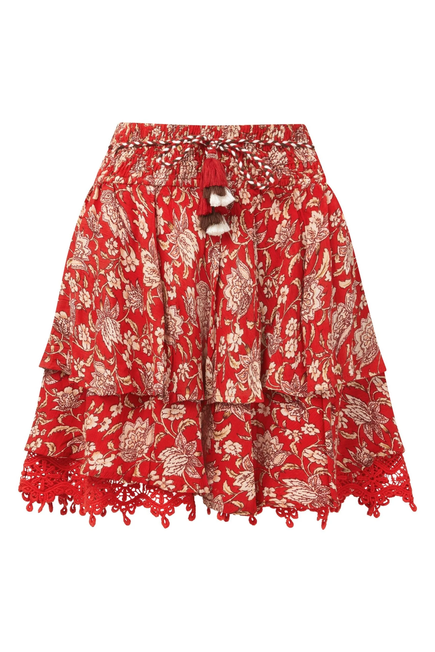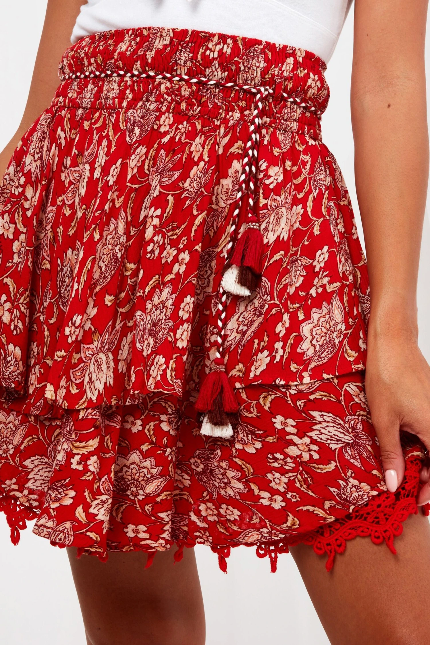 This stunning rara skirt is full of gorgeous details. We love how the floral print works with the shirred waist and lace at the hem. Finished with a pretty tie, it combines feminine features with a boho feel to create a totally unique summer style. For those who like to stand out, try wearing it with a fabulous ruffle blouse. Approx Length: 48cms.