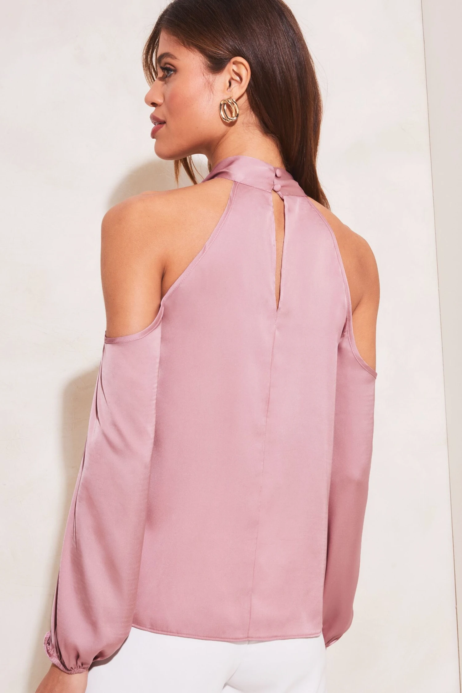 Lipsy Satin Cold Shoulder Keyhole Long Sleeve Top