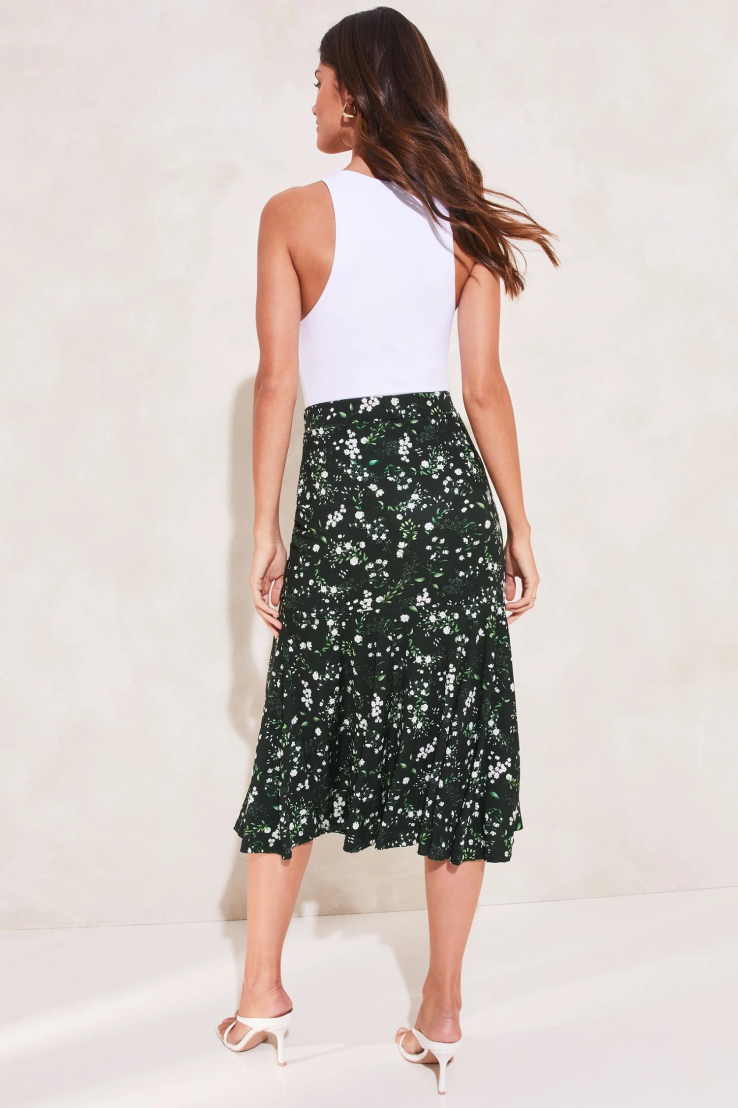 A jersey midi skirt from Lipsy, with side ruching detail and blossom print.