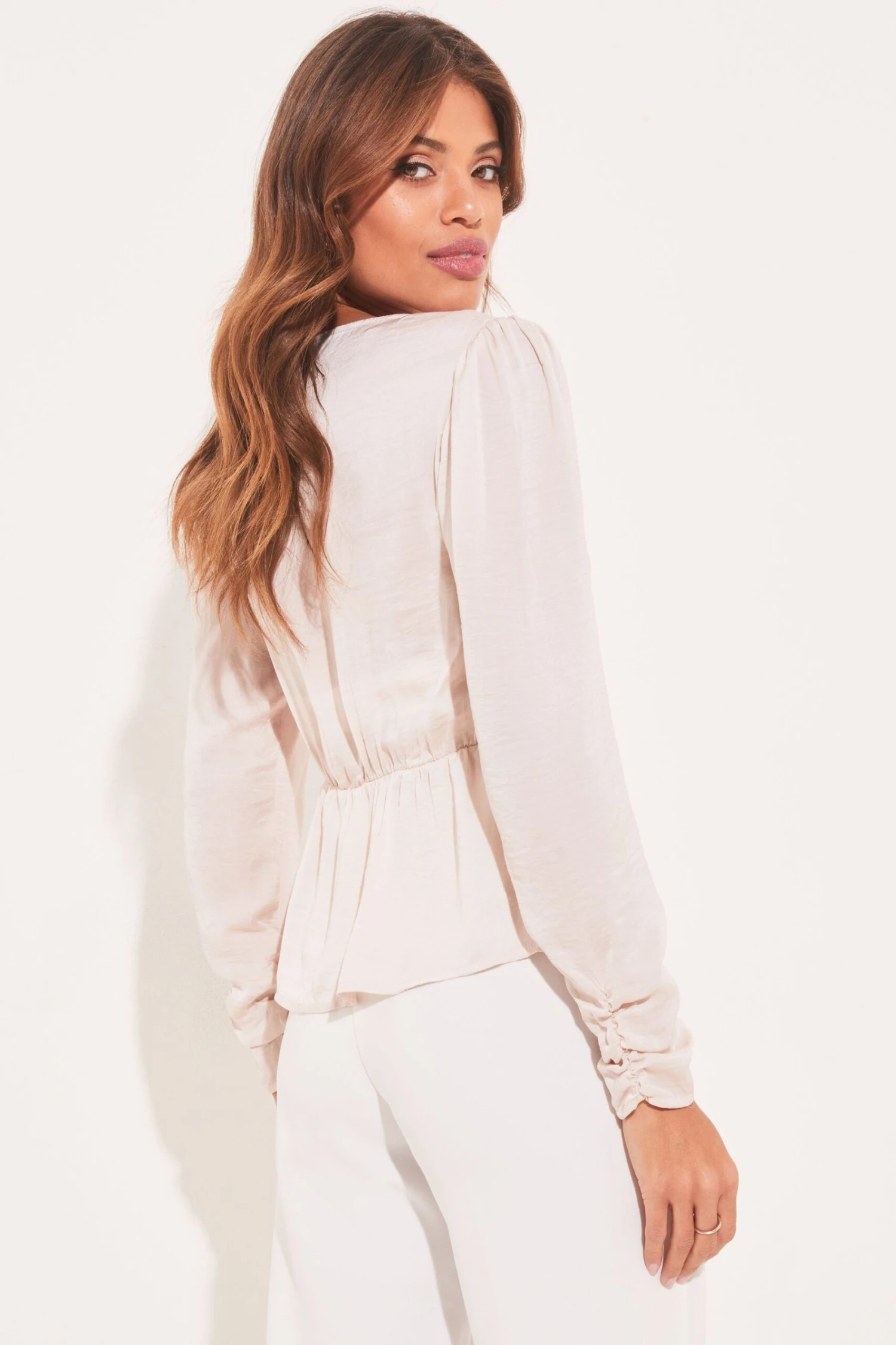 A long sleeved V neck top with stunning twist front detailing, that can be worn for multiple occasions. It can be dressed up for an evening out or worn as a smart top for work. The ideal addition to your wardrobe.