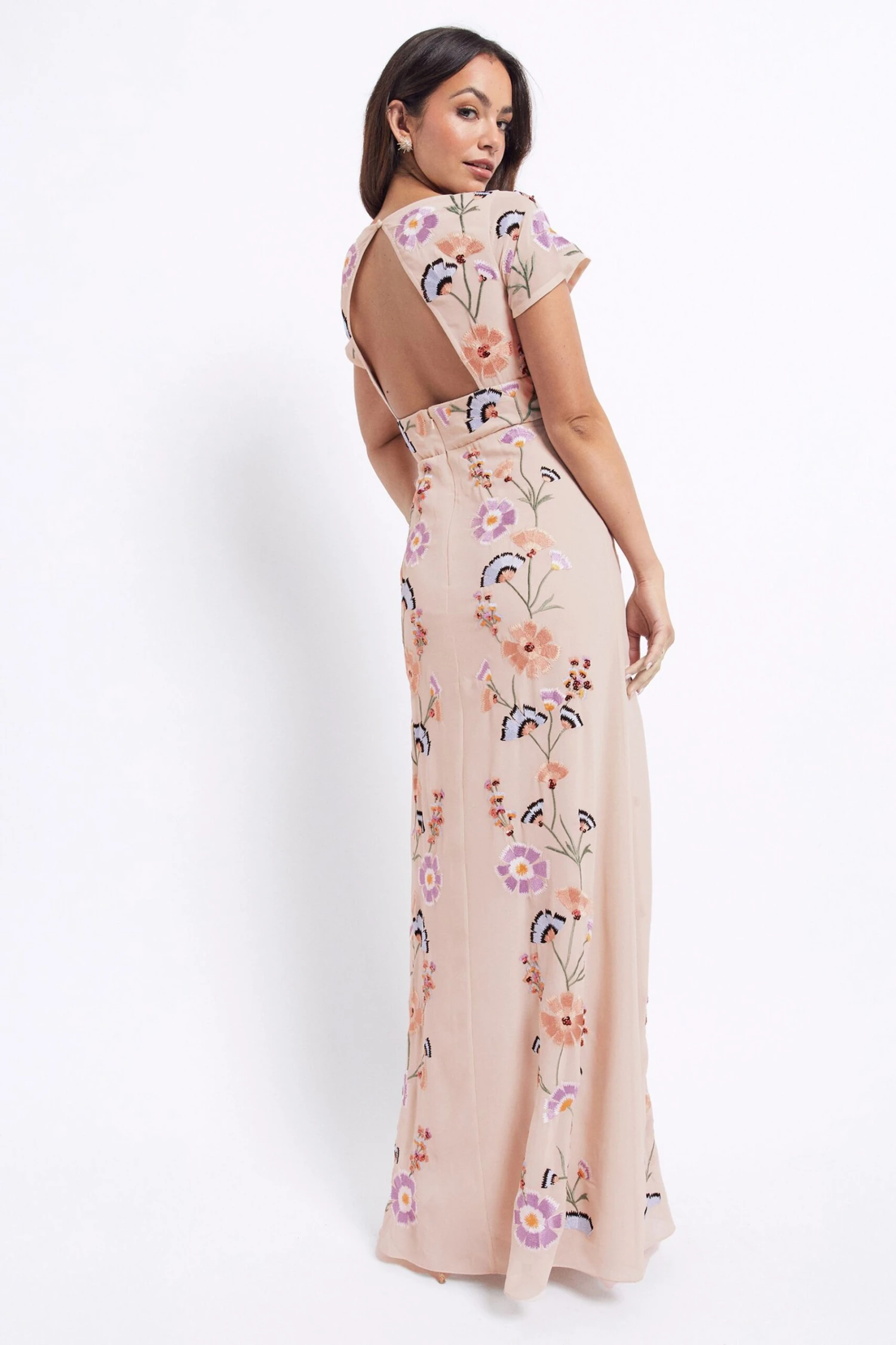 Upgrade your summer events closet with this maxi from Maya Deluxe. A-line silhouette is elevated by the mesmerising floral embroidery, faux button front, and the daring keyhole back. Front slip on the skirt adds plenty of movement so you can stroll through the event with style. Pair this piece with boldly coloured platform heels to further define the summer look.