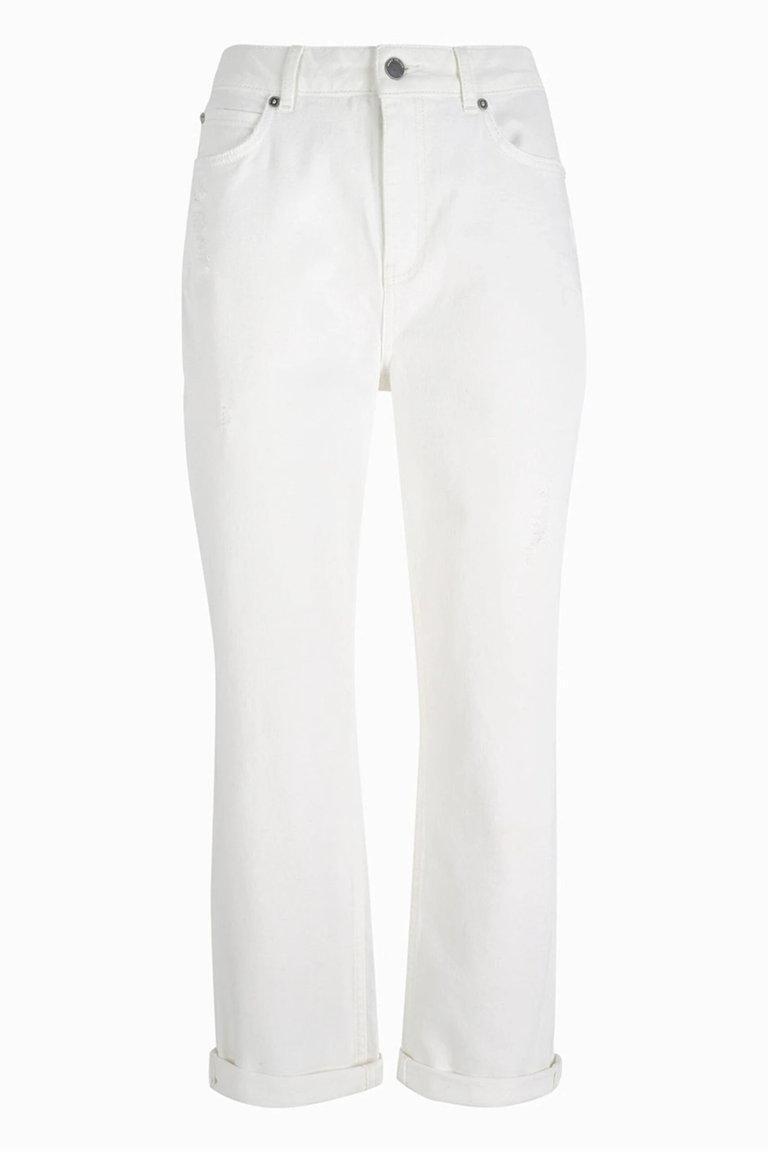 Cut from authentic cotton denim with a hint of stretch for comfort, these white boyfriend jeans are designed to go with everything. They’ve artfully distressed them for a worn-in feel – pair yours with anything from a crisp shirt to a chunky knit.