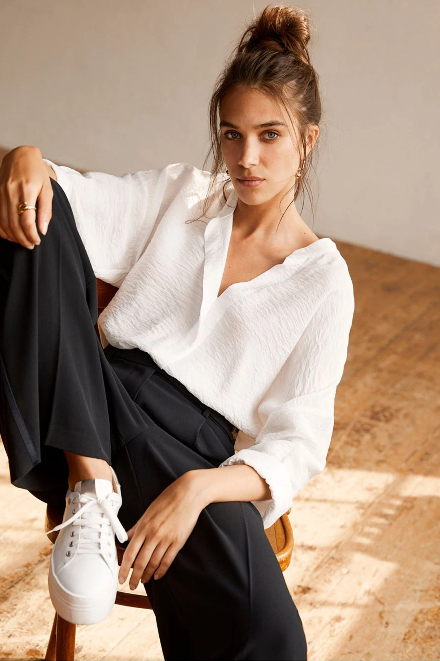 Cut from airy white fabric, this shirt is designed to be a slightly longer version of our bestselling throw-on style. It has a loose-fitting, oversized shape with dropped shoulders and an open collar – perfect for busy and laid-back days alike. Wear yours loose over skinny jeans for a balanced silhouette.