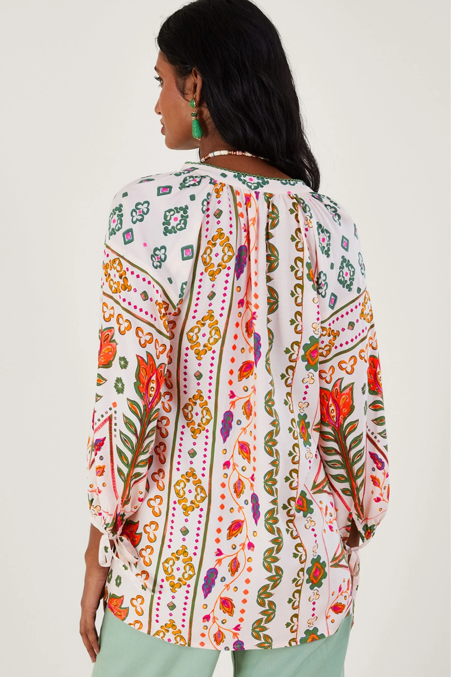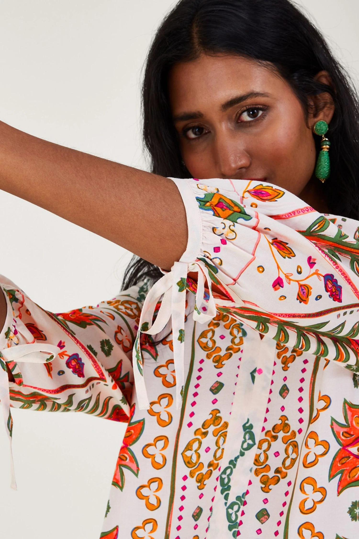 Monsoon Natural Print Shirred Blouse In LENZING™ ECOVERO™