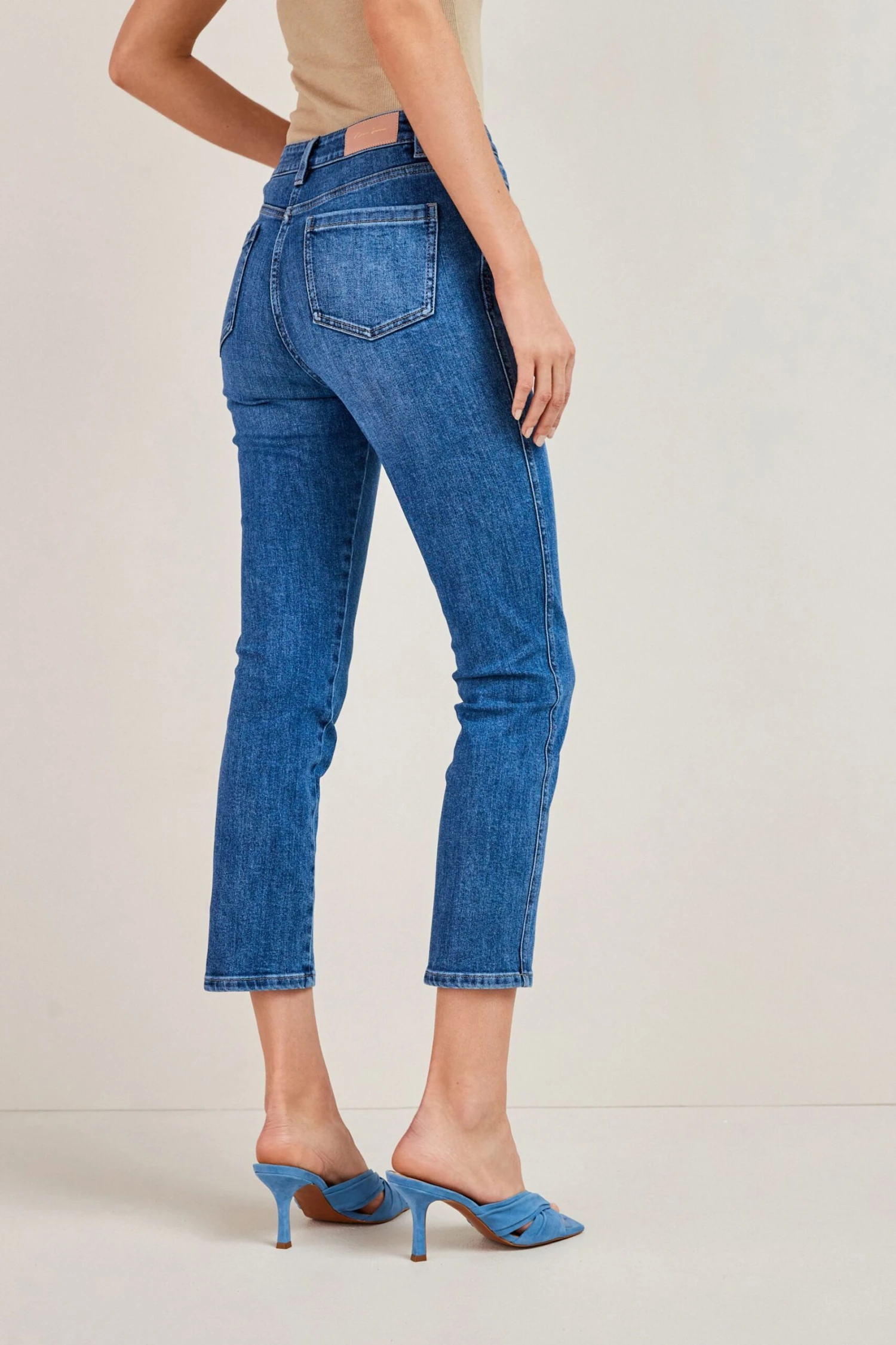 Your favourite jeans with a seasonal refresh. Made in a soft stretch cotton denim for all day comfort, these cropped jeans are designed in a mid rise that’s comfortable for all body types and offers more support around the midsection. Compatible with any length top, these jeans are a great go-to staple for your wardrobe. Figure hugging through the hips and thigh, they taper to a slim leg that finishes at the calf.