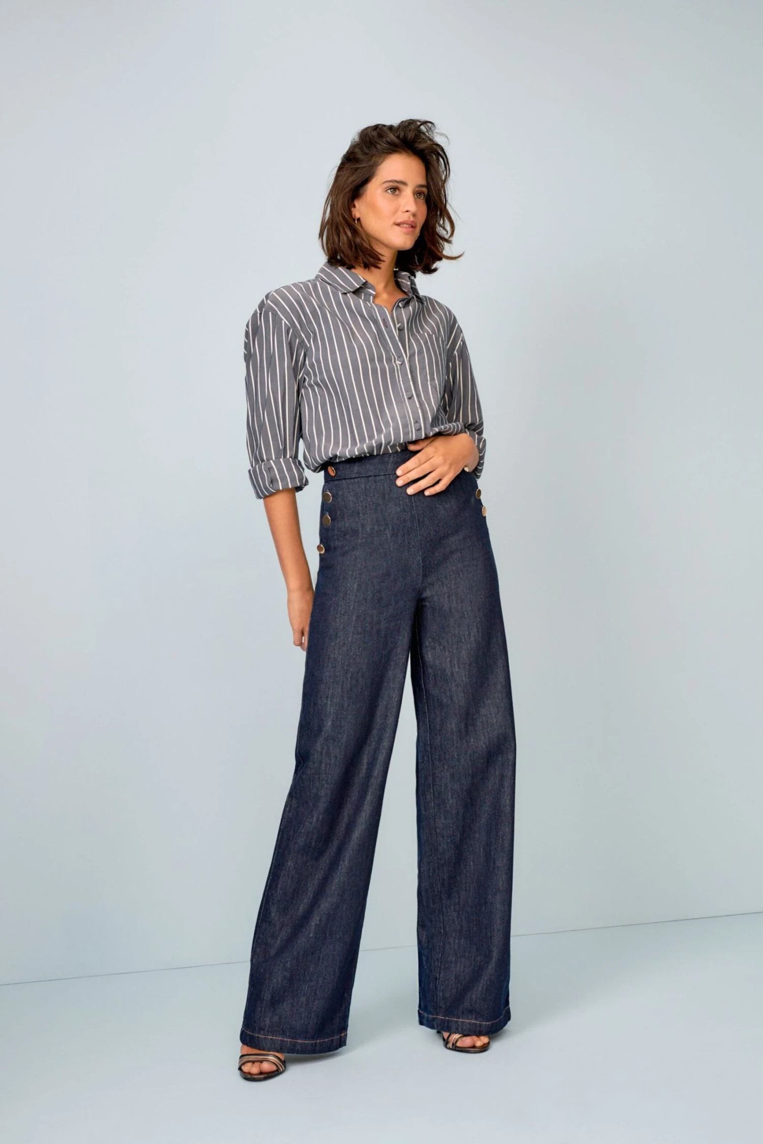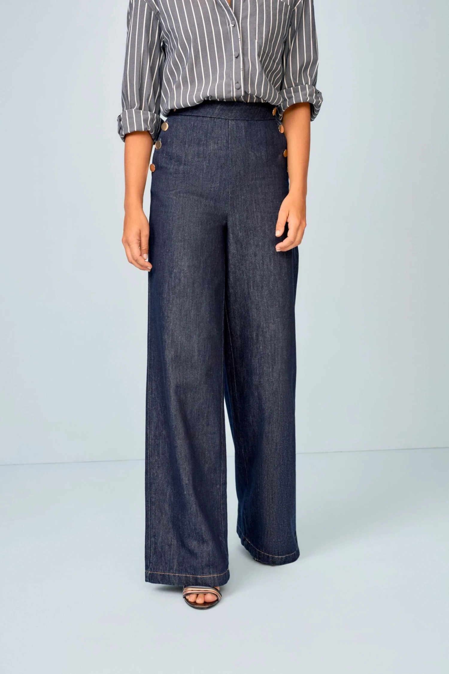 Next Gold Button Detail Smart Wide Leg Jeans