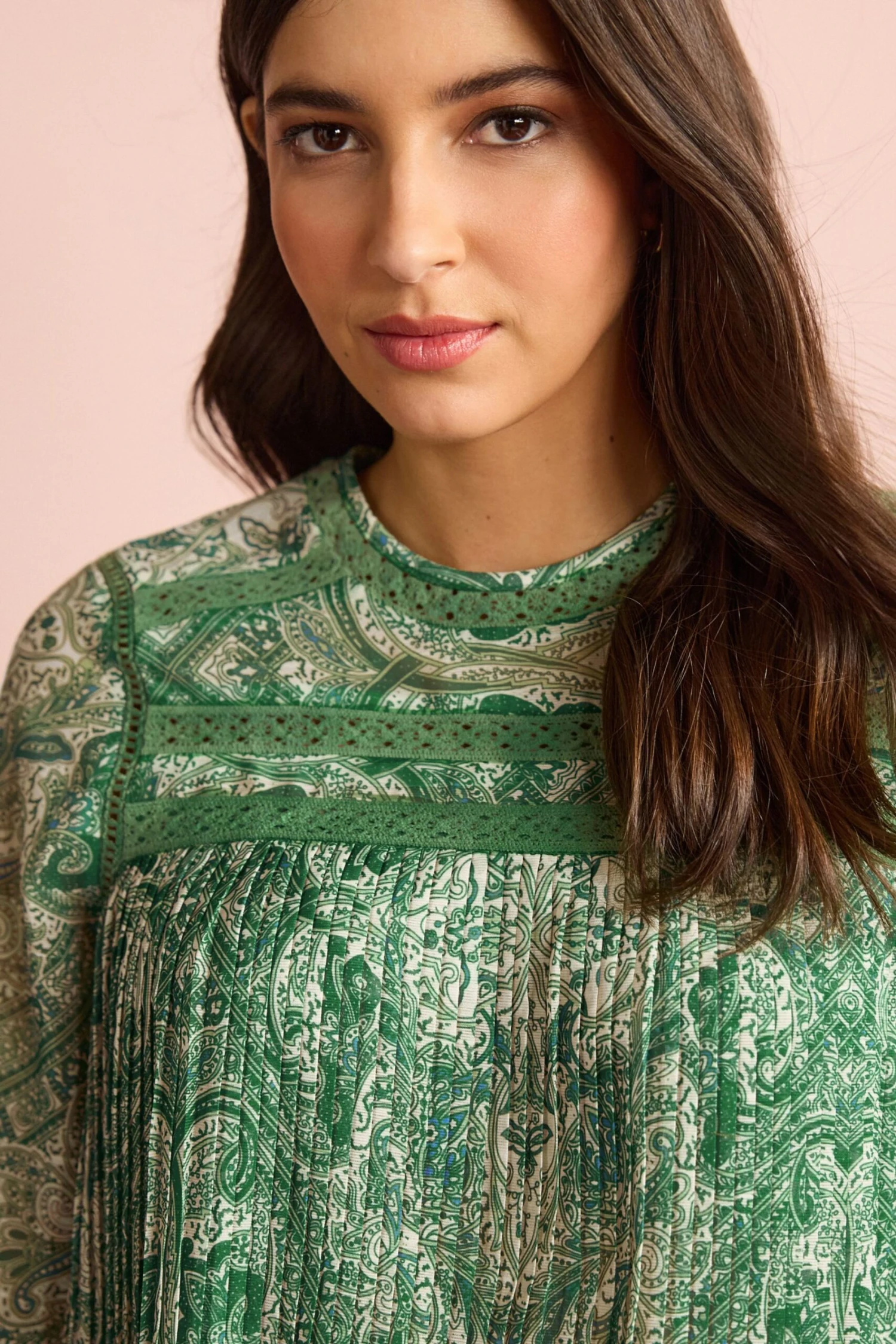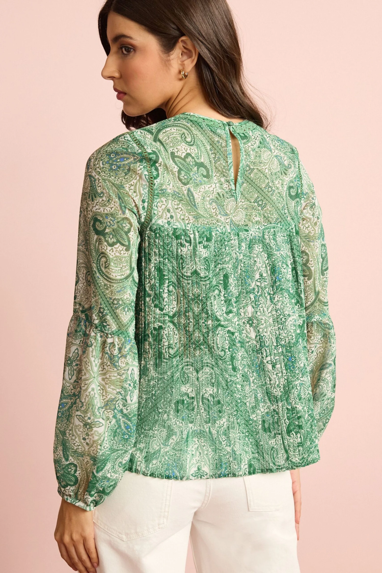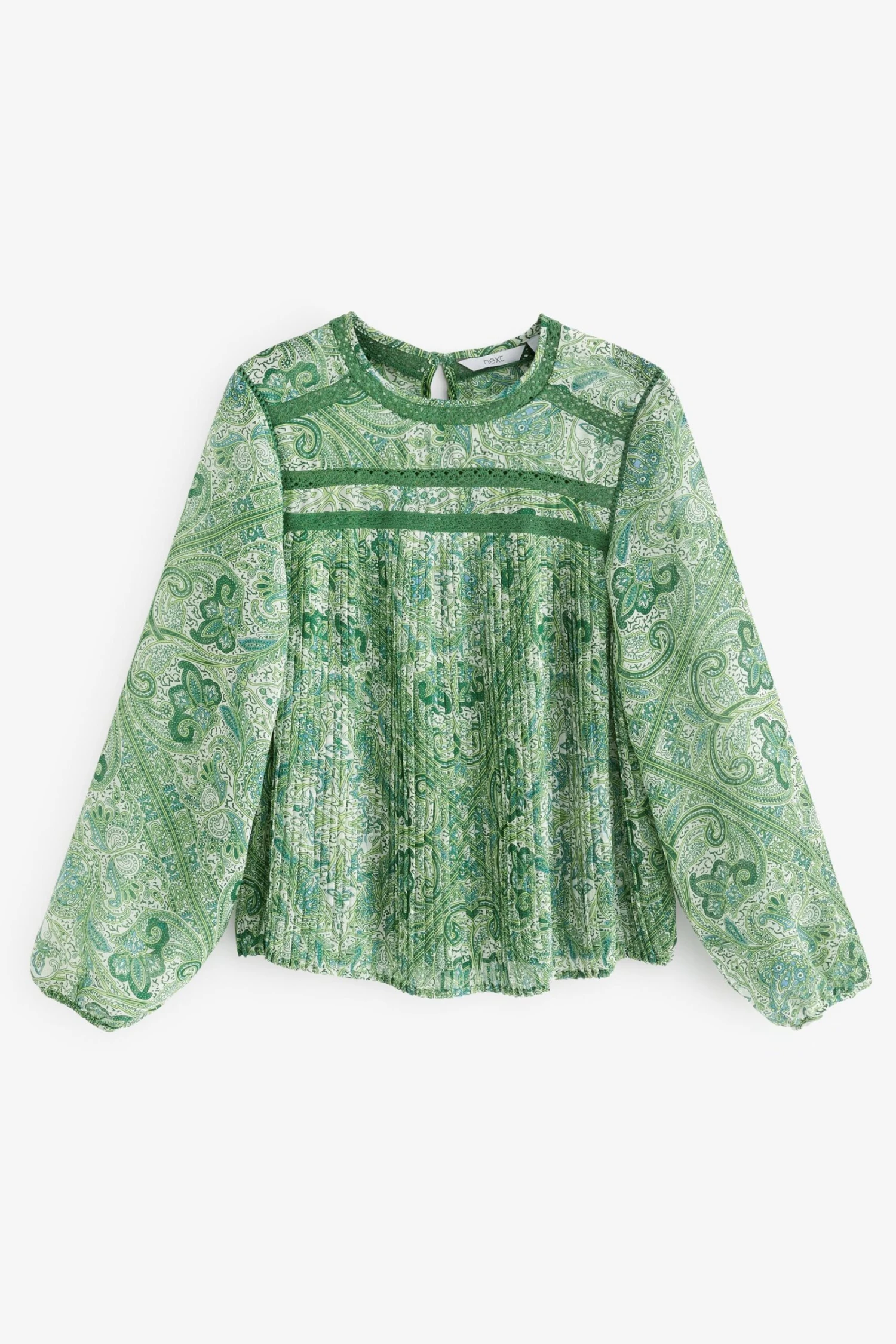 Next Pleat Front Long Sleeve Round Neck Blouse