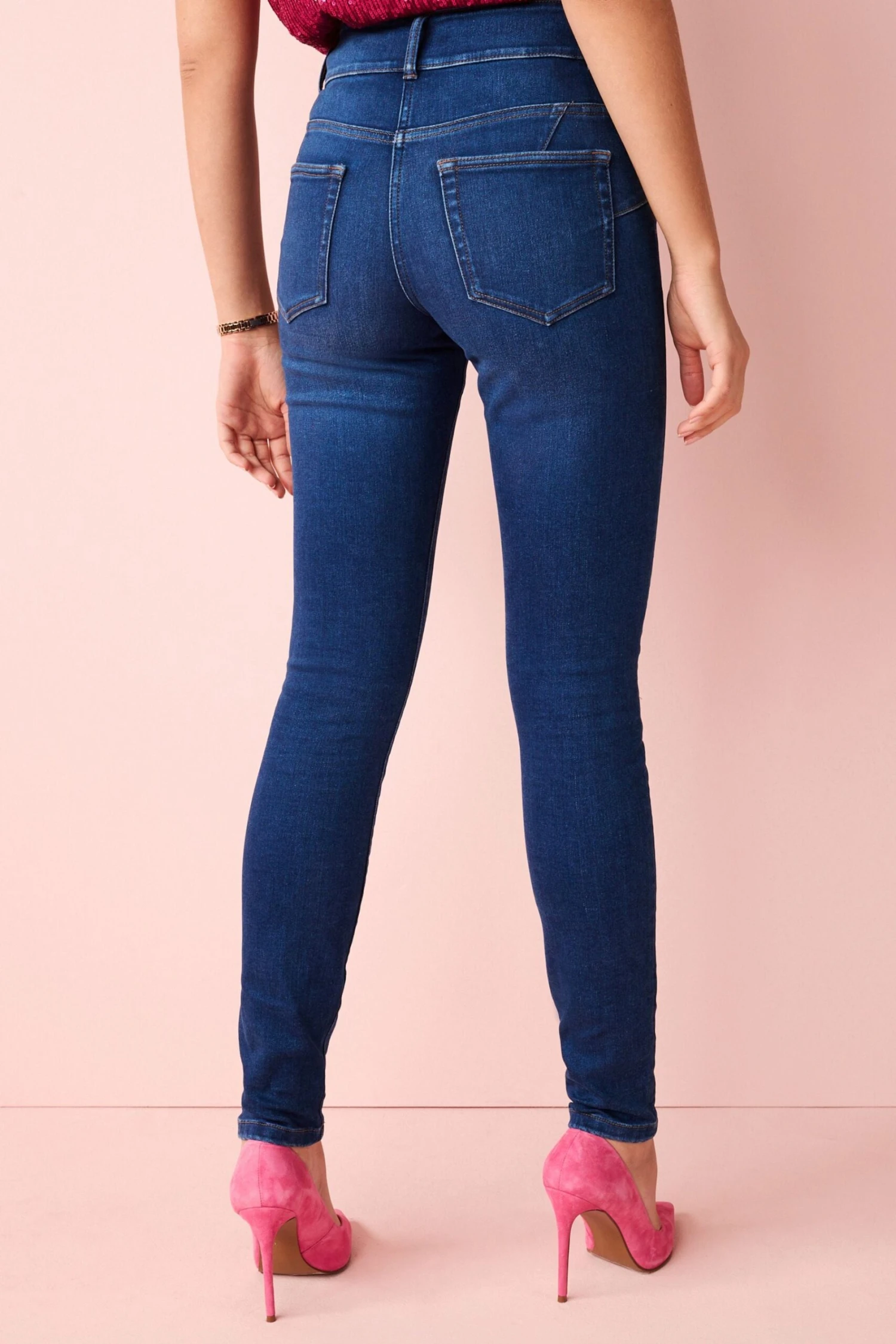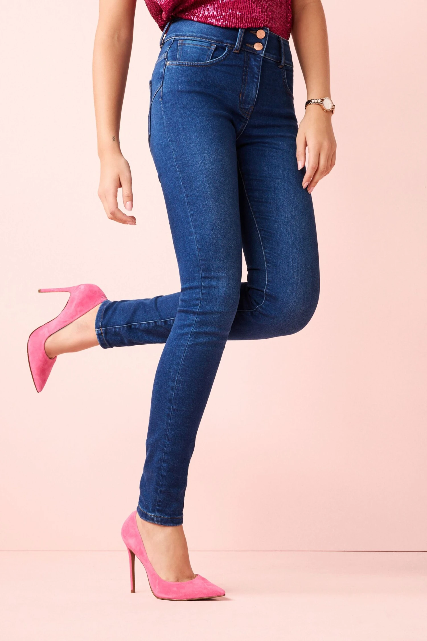 Crafted from a blend of cotton, polyester and elastane, these soft stretchy dark blue jeans with added stretch will support you in all the right places and feature a high waist, double button fastenings on the waist and a zip fly. Perfectly placed pockets on the front and back will flatter your figure as well as offering functionality. Team your new favourite jeans with heels, a t-shirt and blazer for a timeless look.
