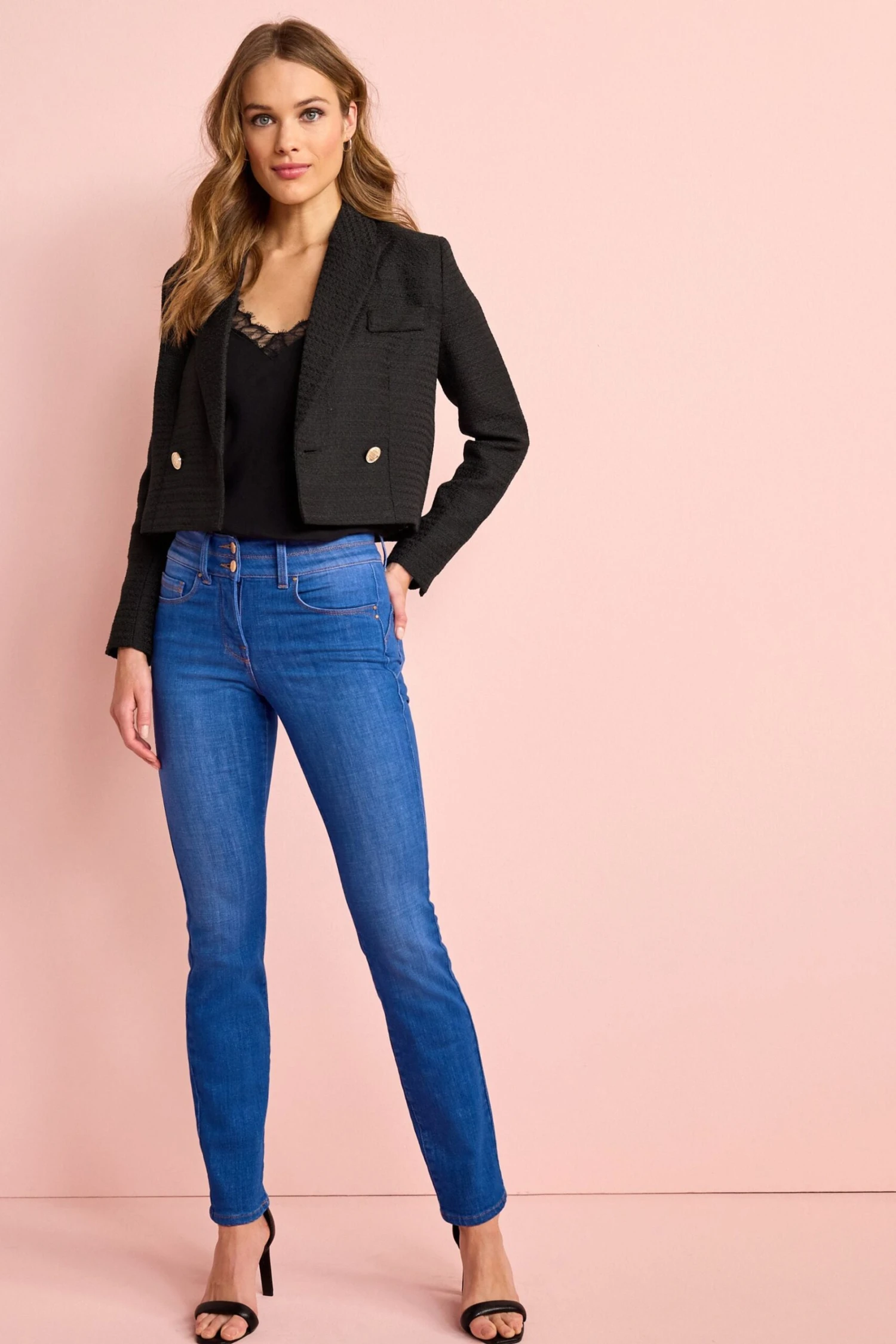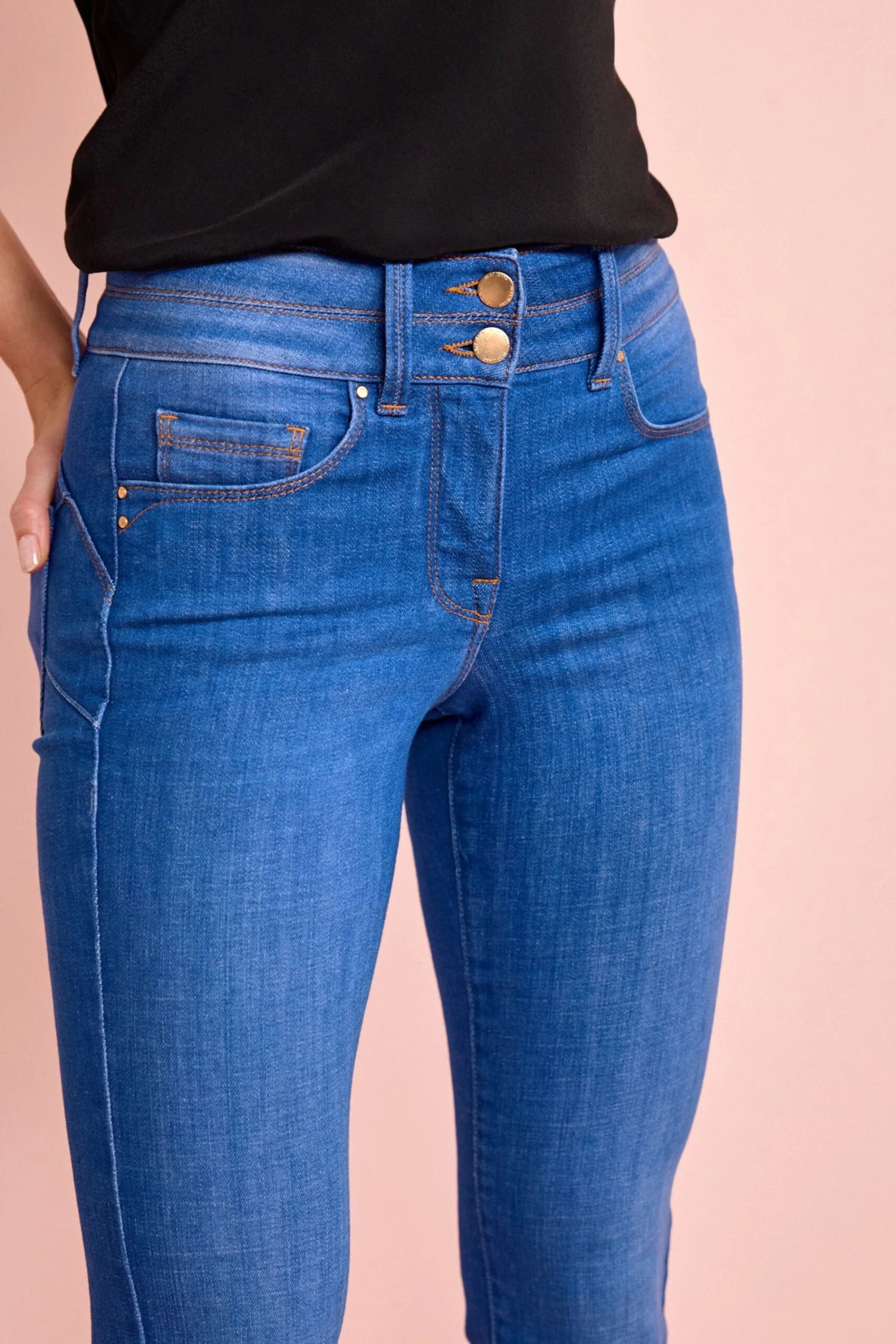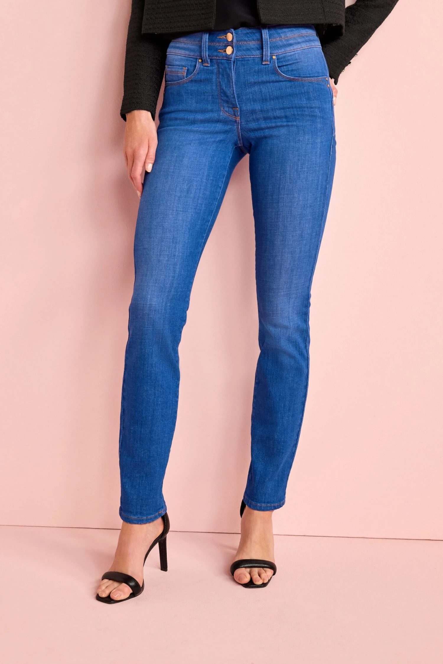 Made from a cotton-rich blend with extra stretch these slim jeans have been designed with cleverly hidden support which sculpts your figure and the high waistband contours your shape. In a high rise, fitted through the hip and thigh with a slim leg.