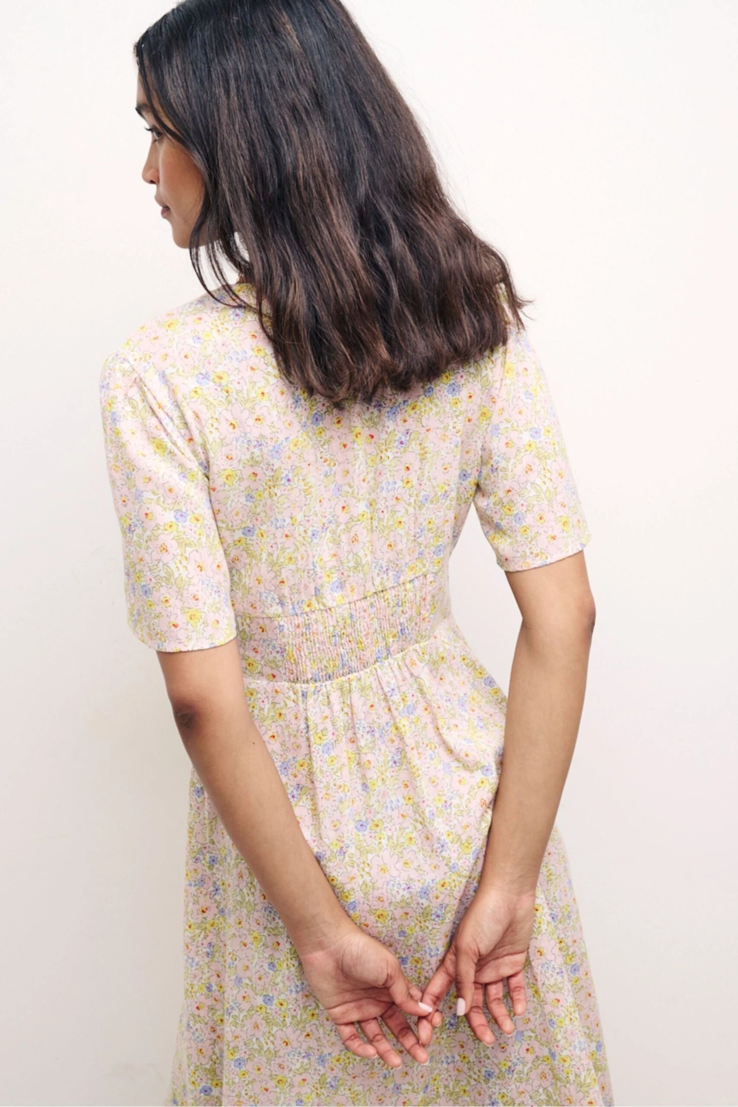 Our trophy style in an illustrated floral print. Alexa is all about the vintage-inspired details, from the timeless tea dress cut to the delicate covered buttons. This one comes in a light fabric, blended with a touch of organic cotton for summer. We’ve also added a subtle shirred back to gently pull you in at the waist. Elevate her with espadrilles and a gold chain. She’ll take you anywhere.