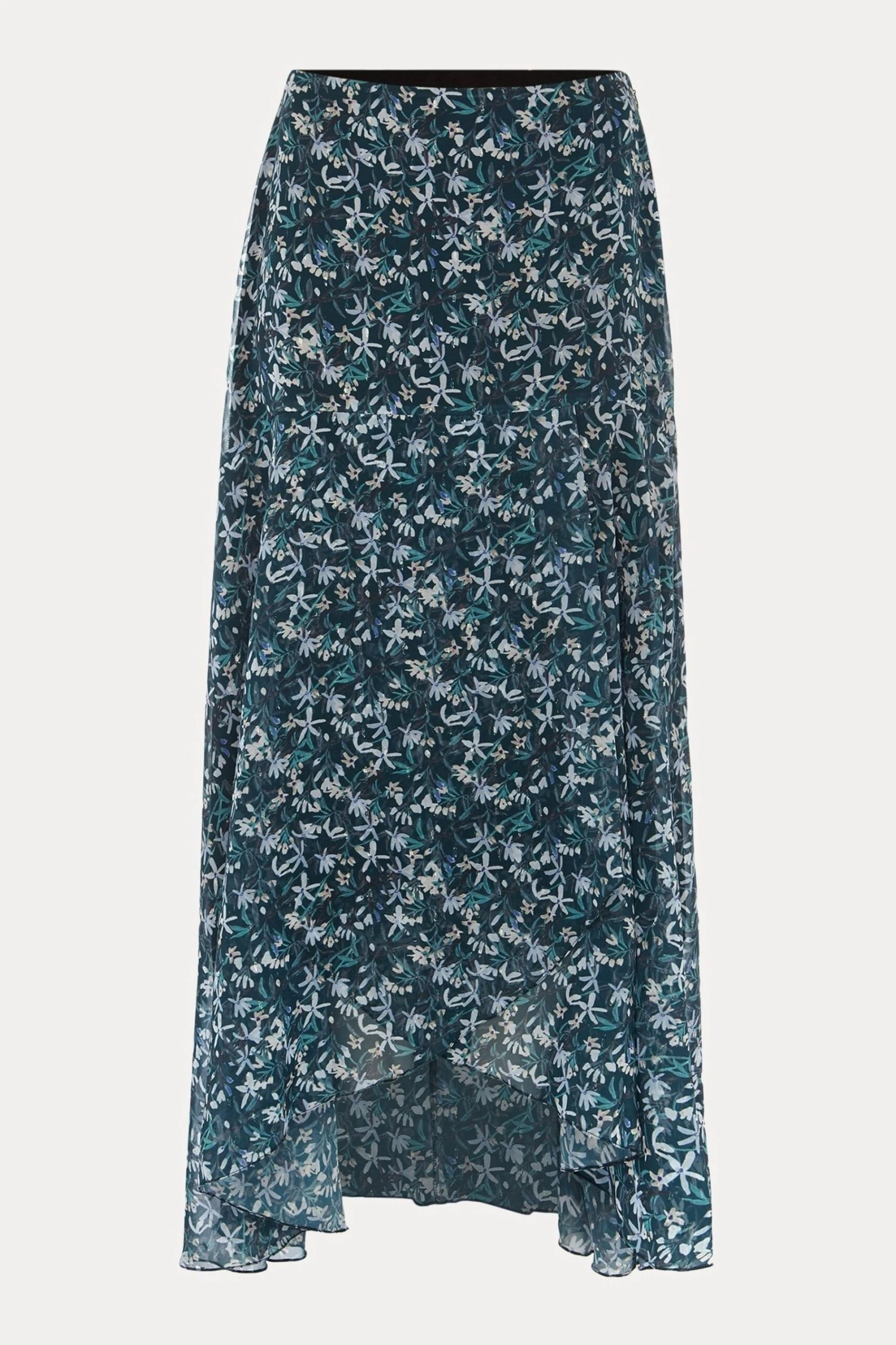 Phase Eight Blue Floral Drop Hem Skirt