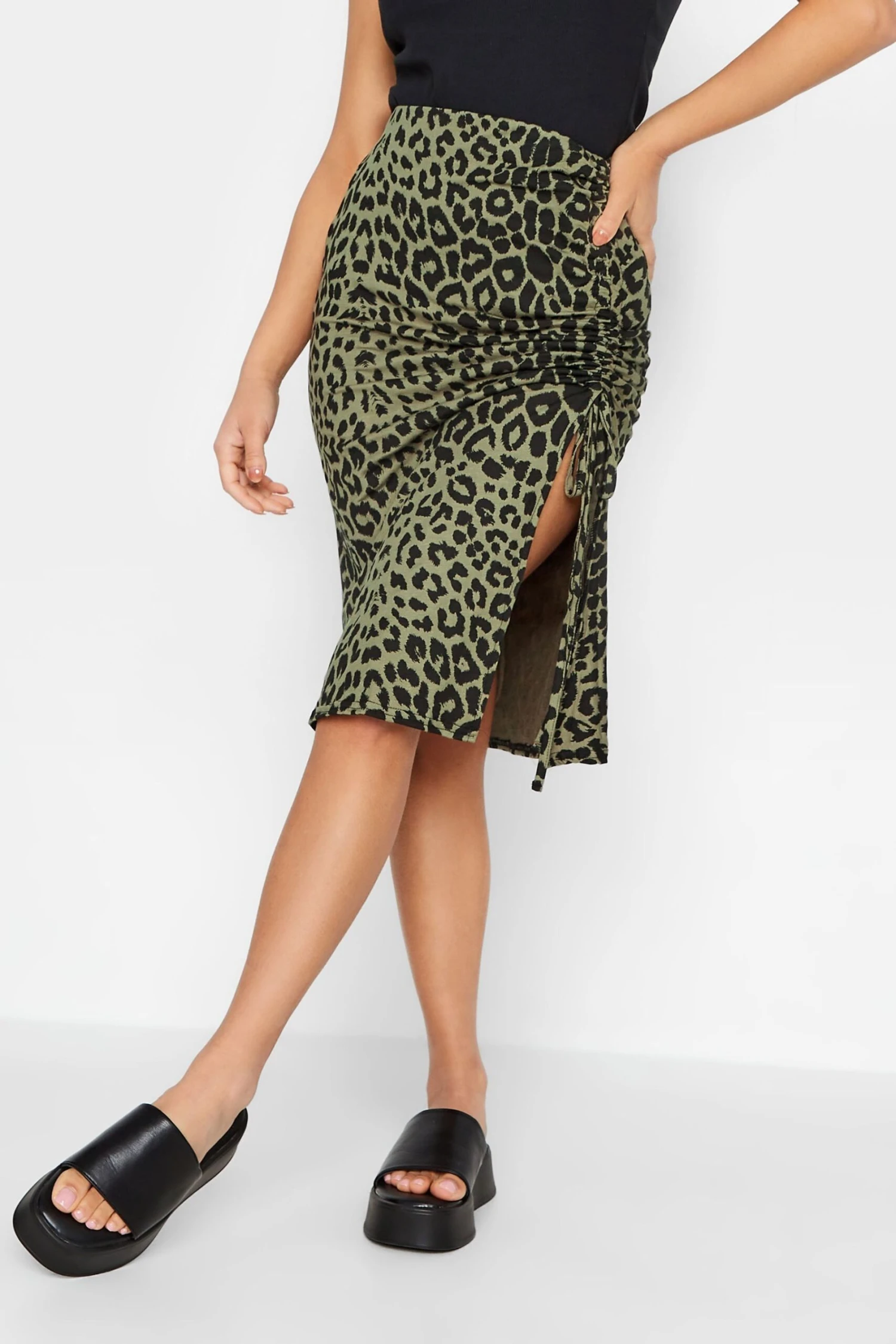 This is how you wear animal print this season. Made from a stretch jersey fabric this new-in PixieGirl skirt features a side split hem with an adjustable ruched detail complete at a midi length. Simply style with a cami top and trainers for a casual look.