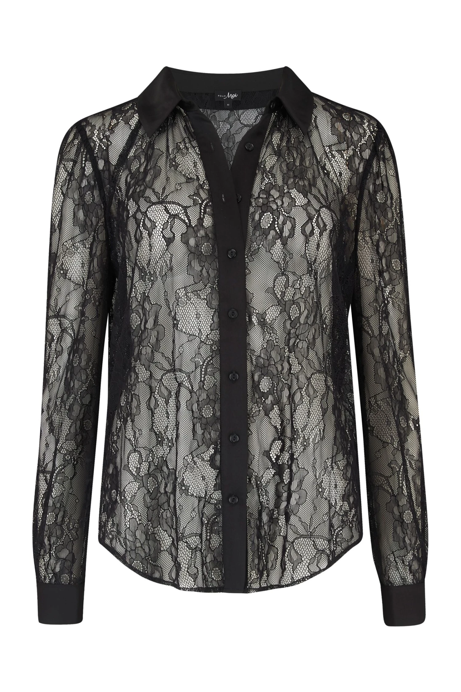 Pour Moi Lace Button Front Long Sleeve Shirt