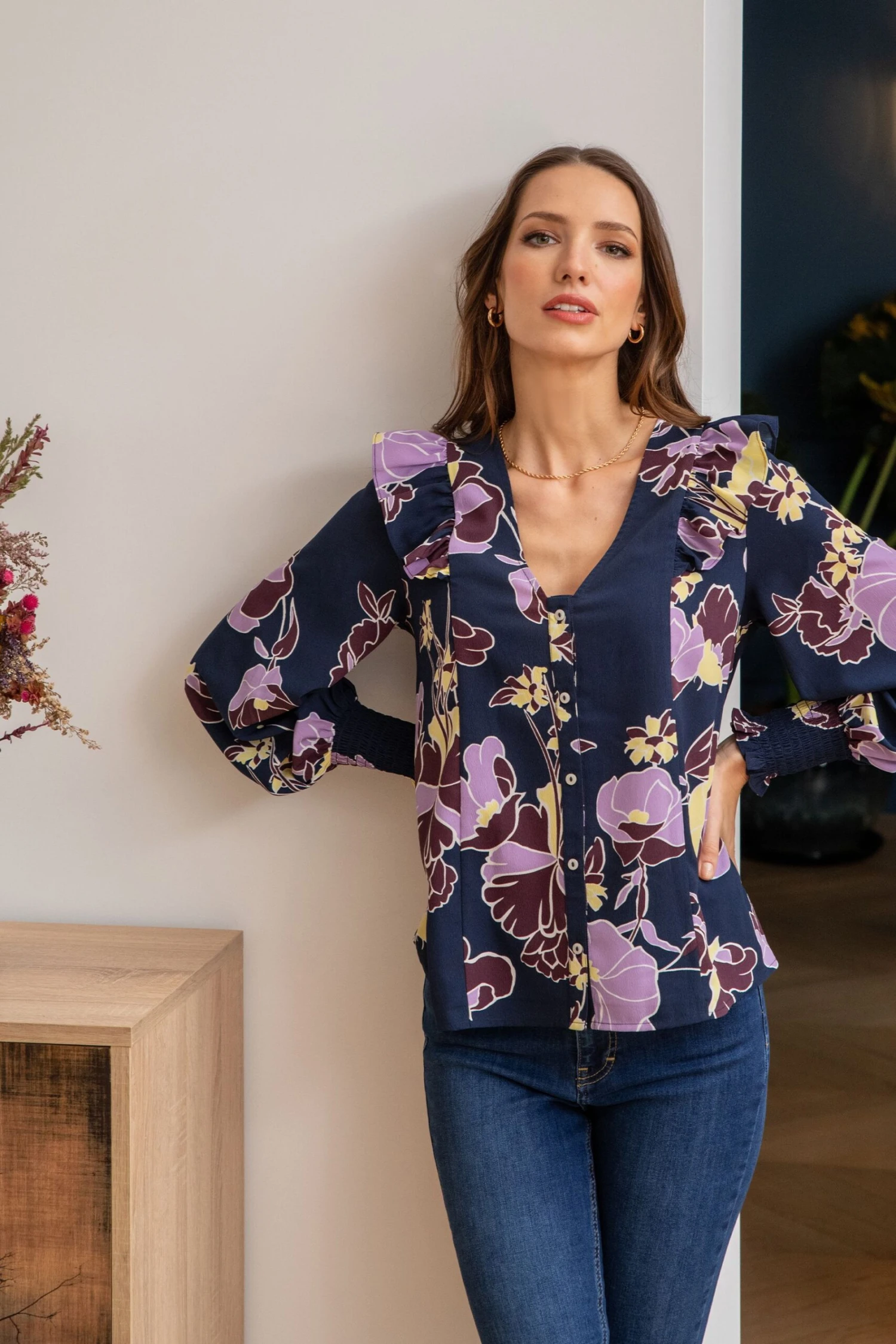 Your search for a feminine blouse is over! Decorated with playful frill detailing, the Maggie Blouse with button through detailing and shirred cuffs looks fabulous tucked into jeans for a pared-back evening look. With its fun and flirty details, this blouse is a seasonal must-have! We take the impact that our business has on the planet seriously that is why our Maggie Button Through Frill Blouse is made from recycled materials.