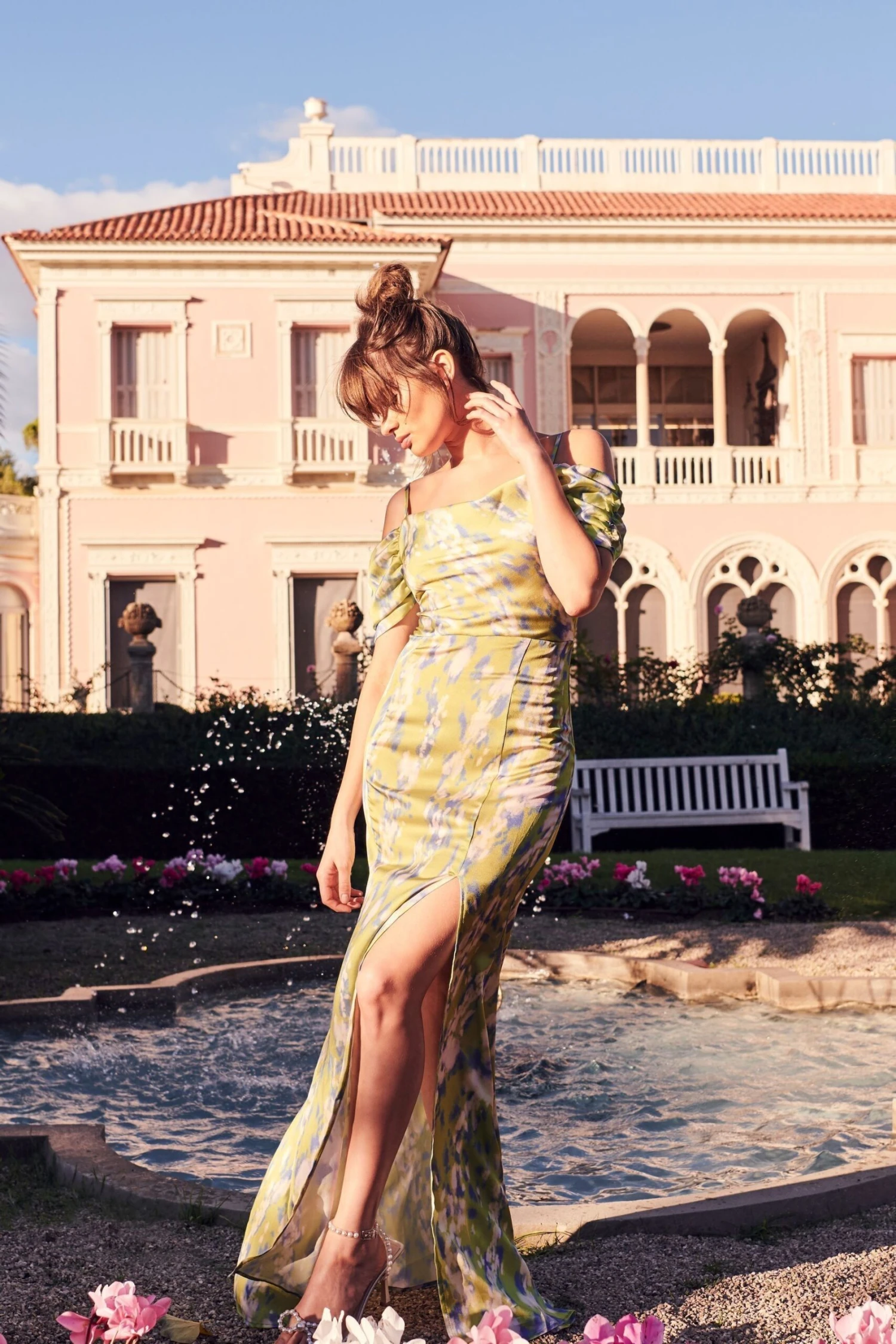 Quiz Marble Cowl Cold Shoulder Maxi Dress