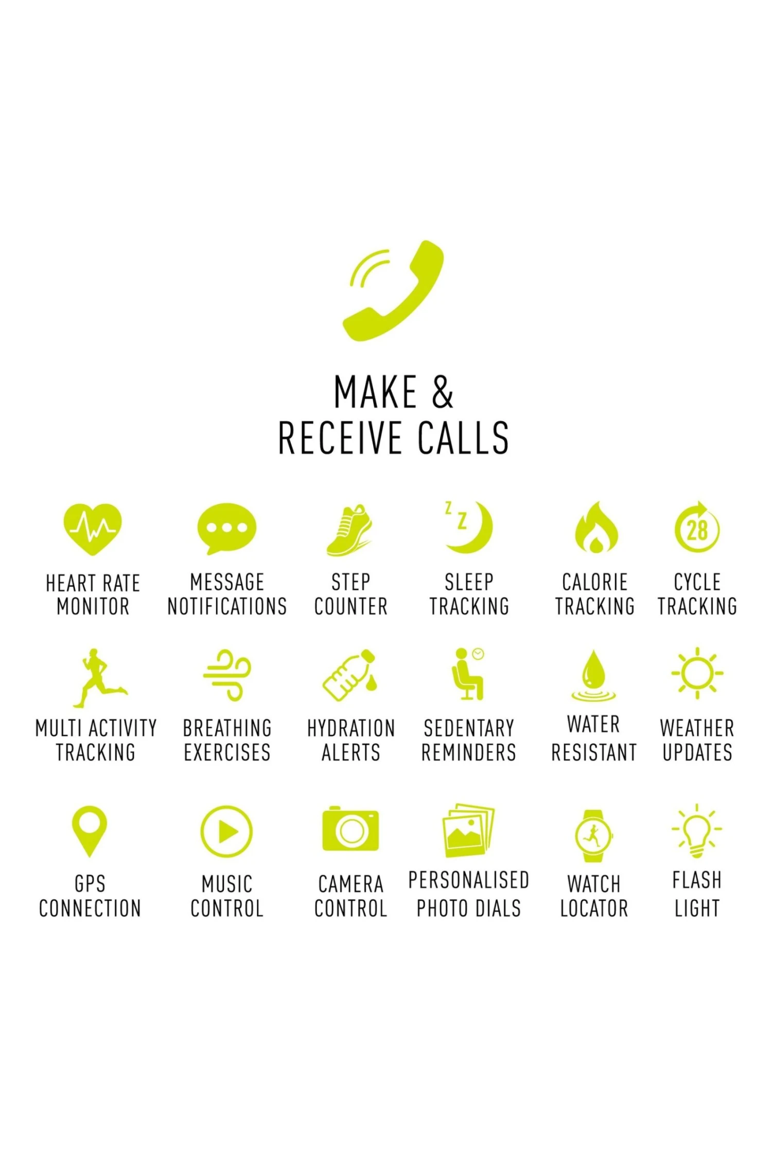 Introducing the Reflex Active Watch that does it all! Reflex Active Series 15 now brings calling function to the range, so whether you are rushing from meeting to meeting, picking up the kids or dashing to the gym. Wherever you are, whatever you are doing you can always take the call without missing a beat. The hands-free call feature allows you to make and receive calls directly from your watch, anytime, anywhere. Scrambling for your phone in your pocket or bag is now a thing of the past! We all need to take a break occasionally; the Series 15 is jam-packed with great wellness features. The built-in wellness settings assist with breathing exercises, hydration reminders and menstrual cycle tracking amongst others. The Series 15 is also your perfect training partner! With built in Heart Rate Monitor, multiple sports tracking, and music control. You can track your fitness and illustrate progression through the Reflex Active Red App. Set your goals and smash them! All these features shouldn’t stop you having fun with your Series 15. Change up the dial from the 4 pre-loaded options to a wide number of choices within the app. Or simply create your own. Use your favourite selfie, holiday snap or picture and use in the custom dial settings. Features also include: Make outgoing calls, GPS Connection, Personalised Photo Dials, receiving message notifications, Track specific activities (walking, running, cycling, skipping rope, basketball, soccer, badminton, swimming) in real time, Distance/steps/calorie tracking, Breathe training exercises, Live weather updates from your watch, Selfie camera control, Find your phone function, Track your sleep, Alarm and reminders and Choose from a range of different dials. The watch features a Square Rose Gold case with Pink Silicone strap and Rose Gold buckle. Each watch is packed in a Reflex Active presentation gift box complete with instruction manual, USB charger (sealed rechargeable battery) and two-year manufacturer guarantee. IP68 Water Resistant. Download the free Reflex Active Red App now to explore in more detail. IOS & Android Compatible.