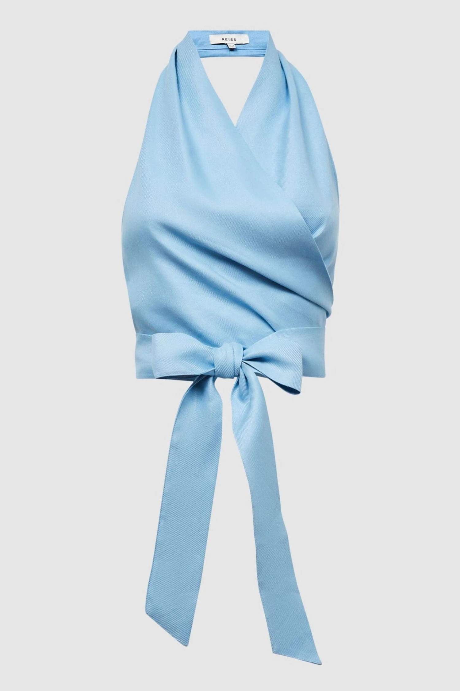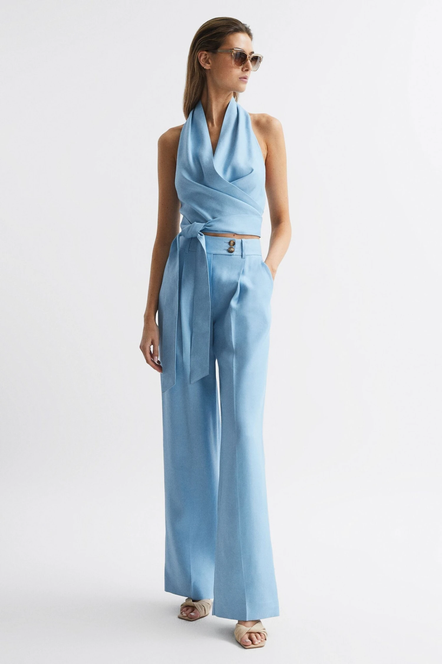 Confident styling calls for the Hollie cropped top. Crafted from a crisp linen blend in a timeless white shade, this piece is set to become your style hero for occasions to come. It’s a halter neck design which hugs the frame and secures with a self-tie element. Pair with high-rise separates to complement the profile.