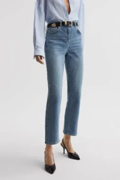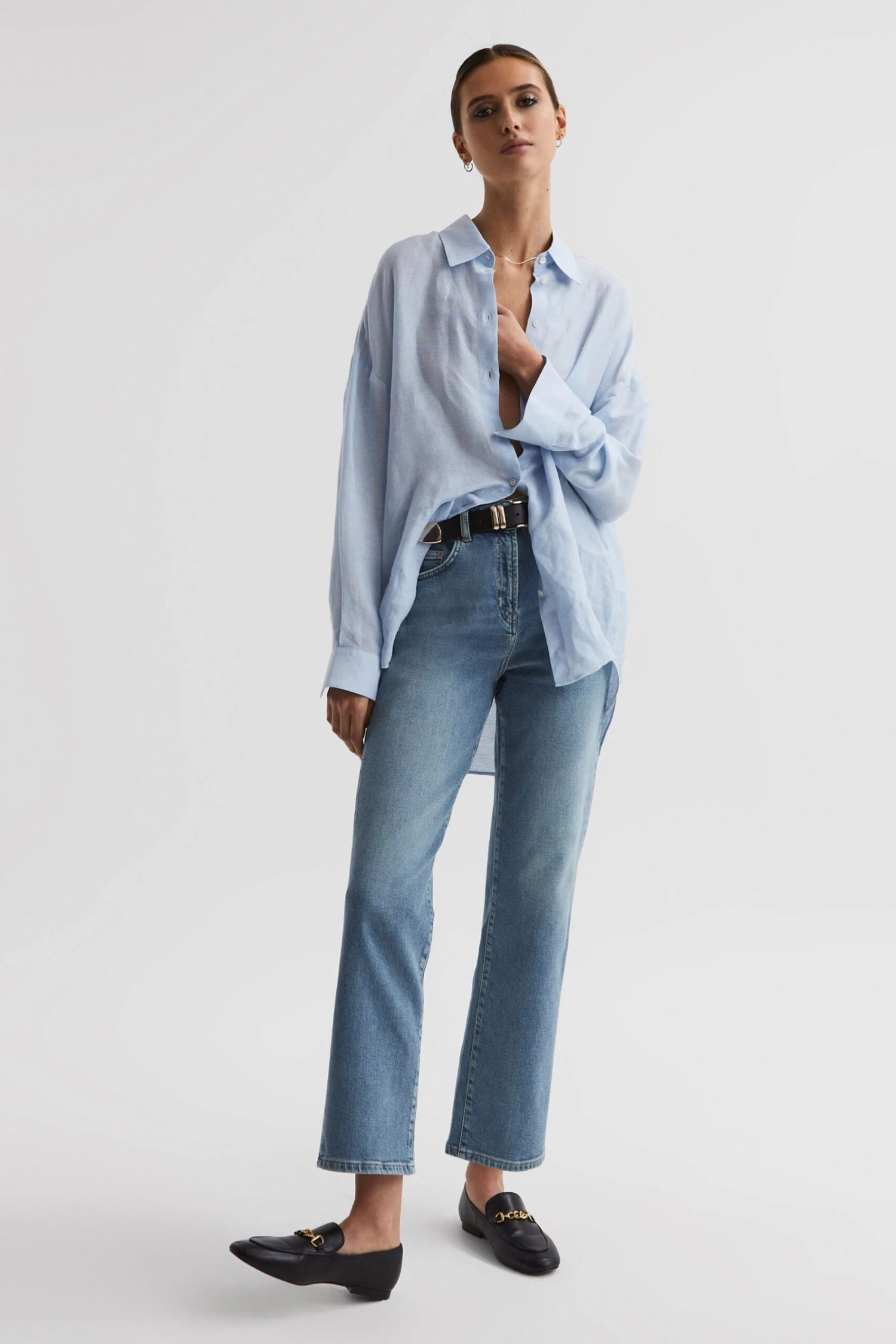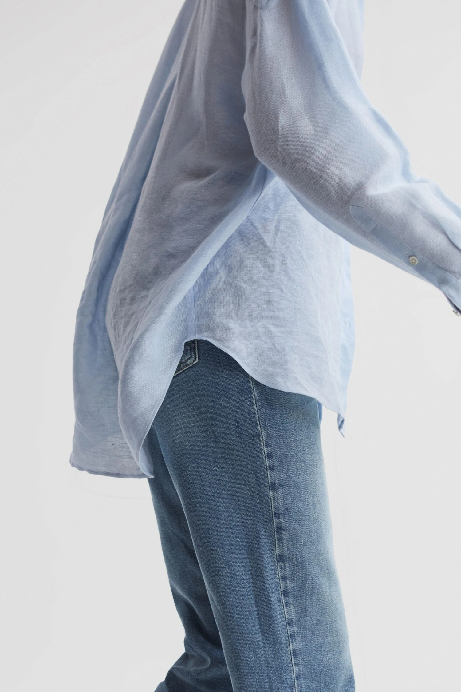 The Phillipa jeans in light blue are cut in a boyfriend silhouette and sit mid-rise on the hips. The straight leg profile allows everyday comfort whilst maintaining a sleek aesthetic. Pair with a vest and loafers for a laidback look.