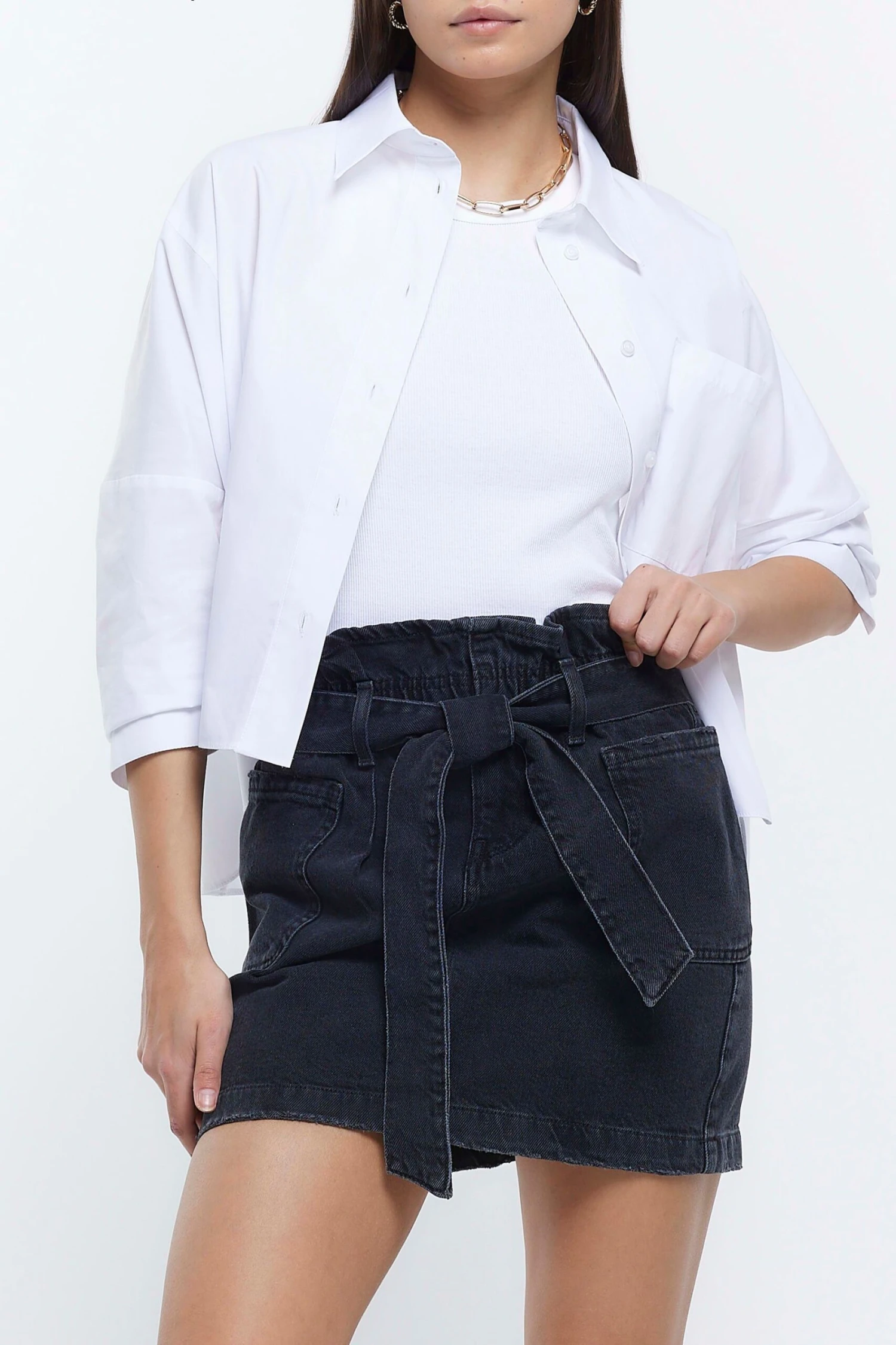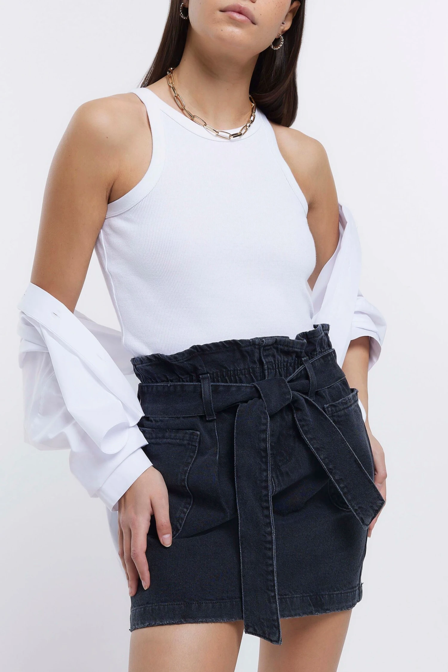 River Island Black Paperbag Pocketed Mini Skirt
