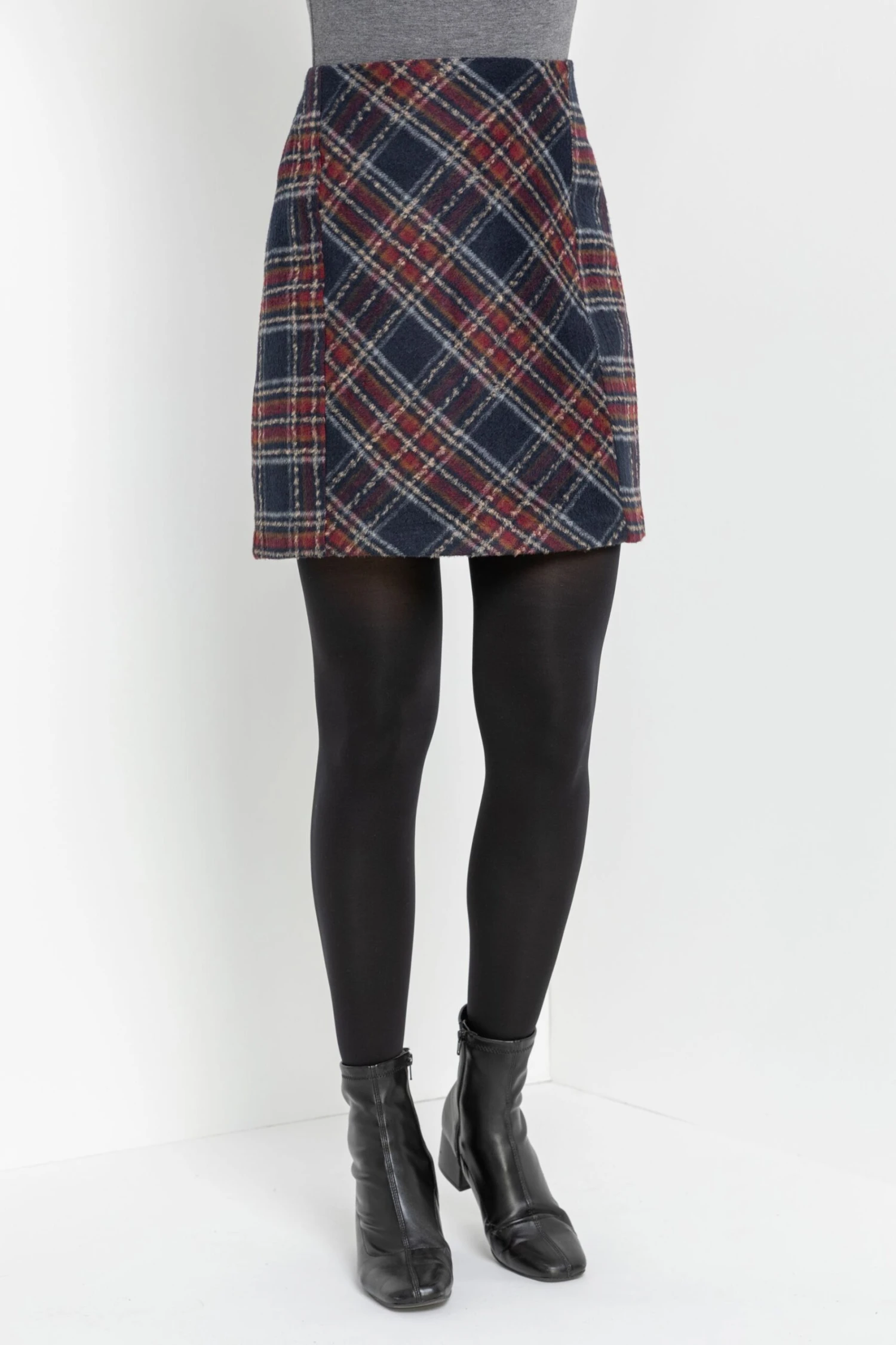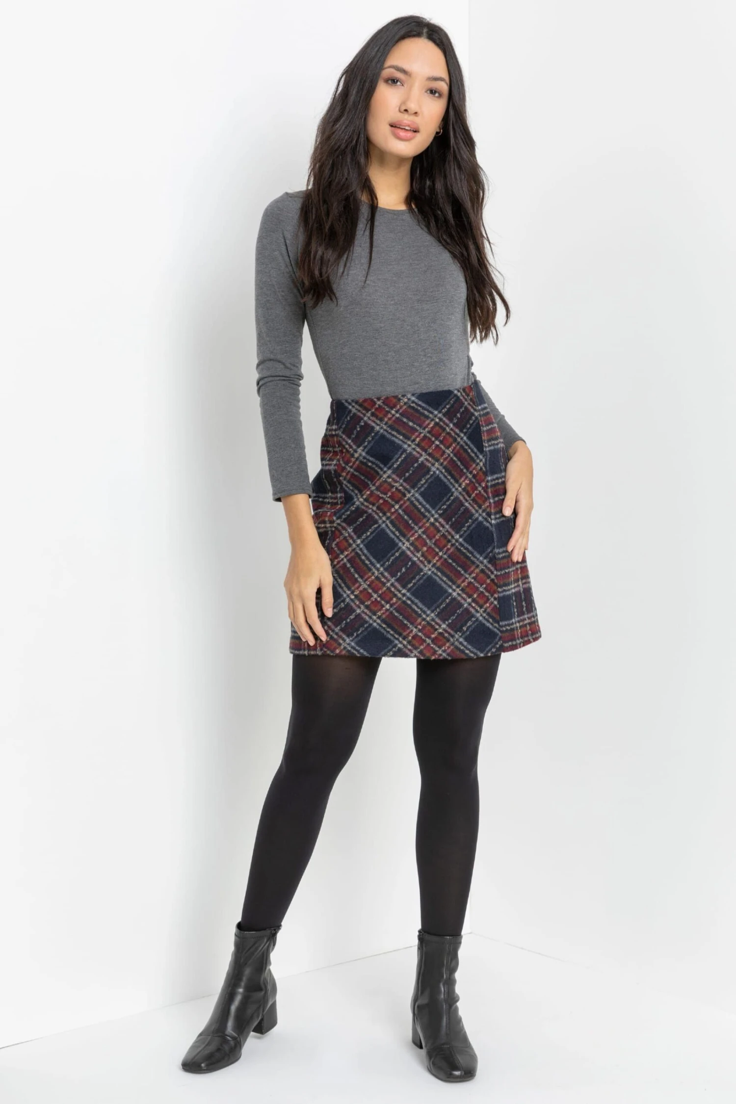 Roman Check Print Brushed Skirt