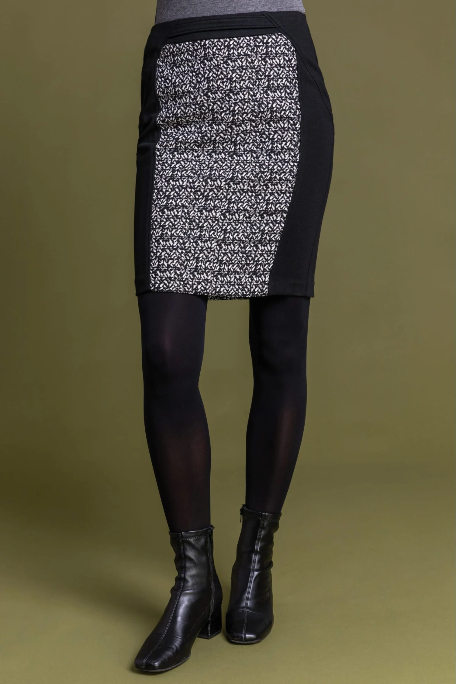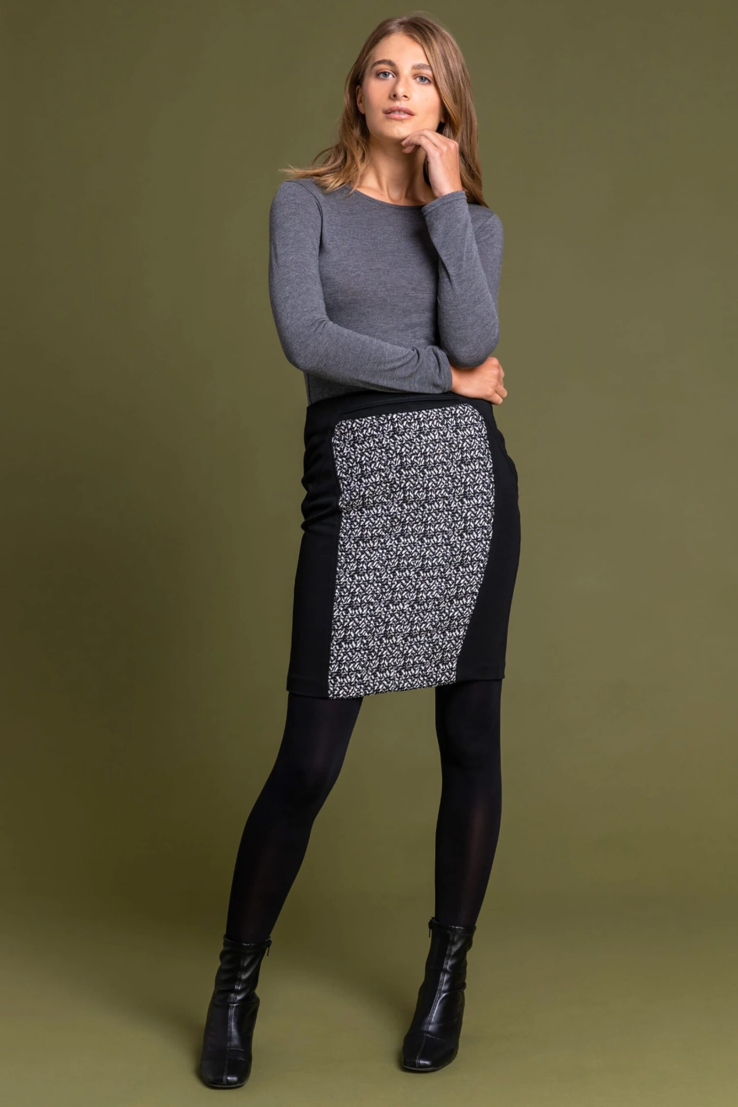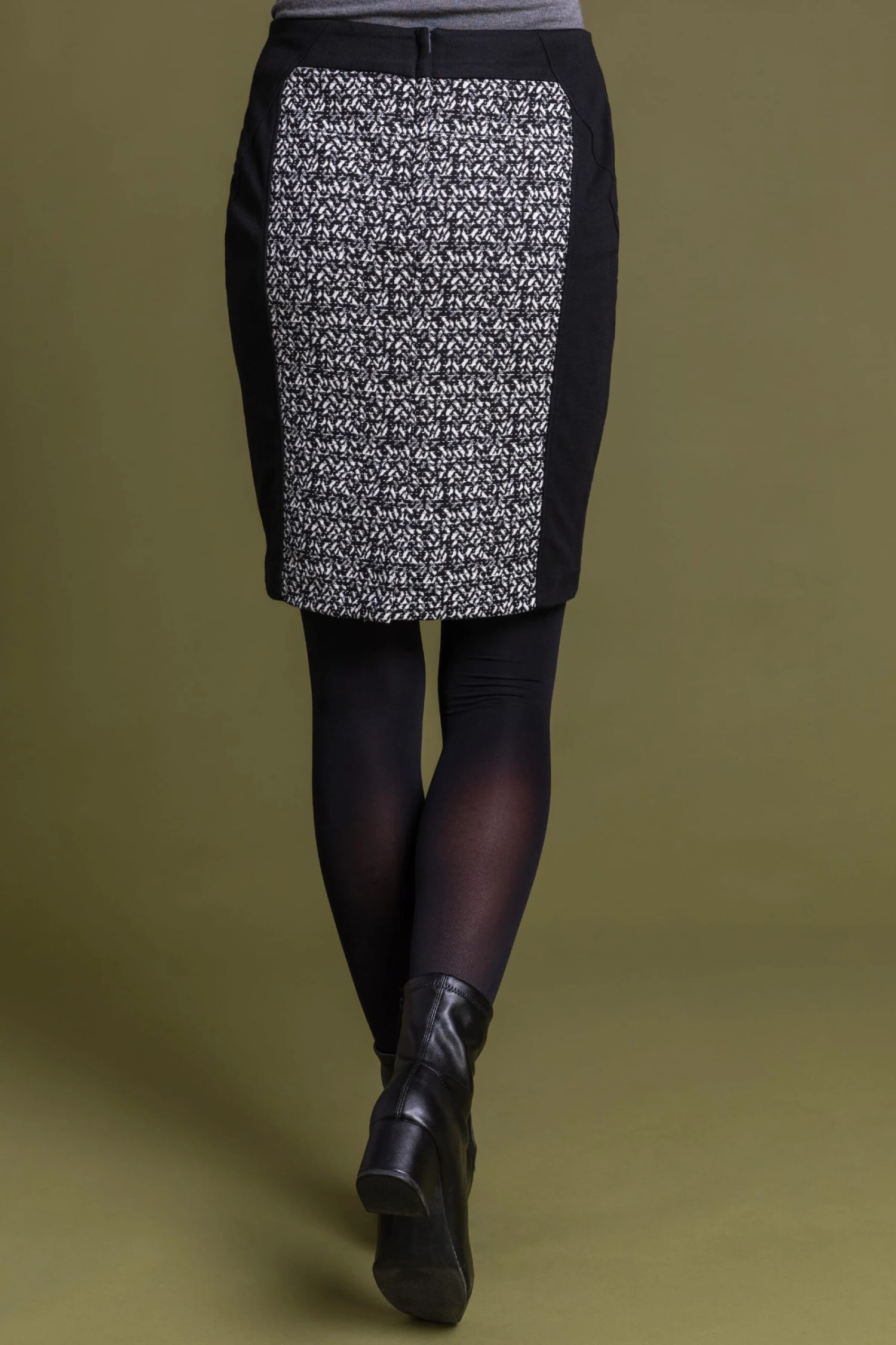 Desk to dinner friendly, this textured panel skirt will keep your wardrobe right on trend. This pencil skirt is fastened with a concealed zip at the back and has a figure skimming panel detail to contour the figure. Team with tights and ankle boots for a chic yet casual daytime look that will take you from work to weekend with ease.