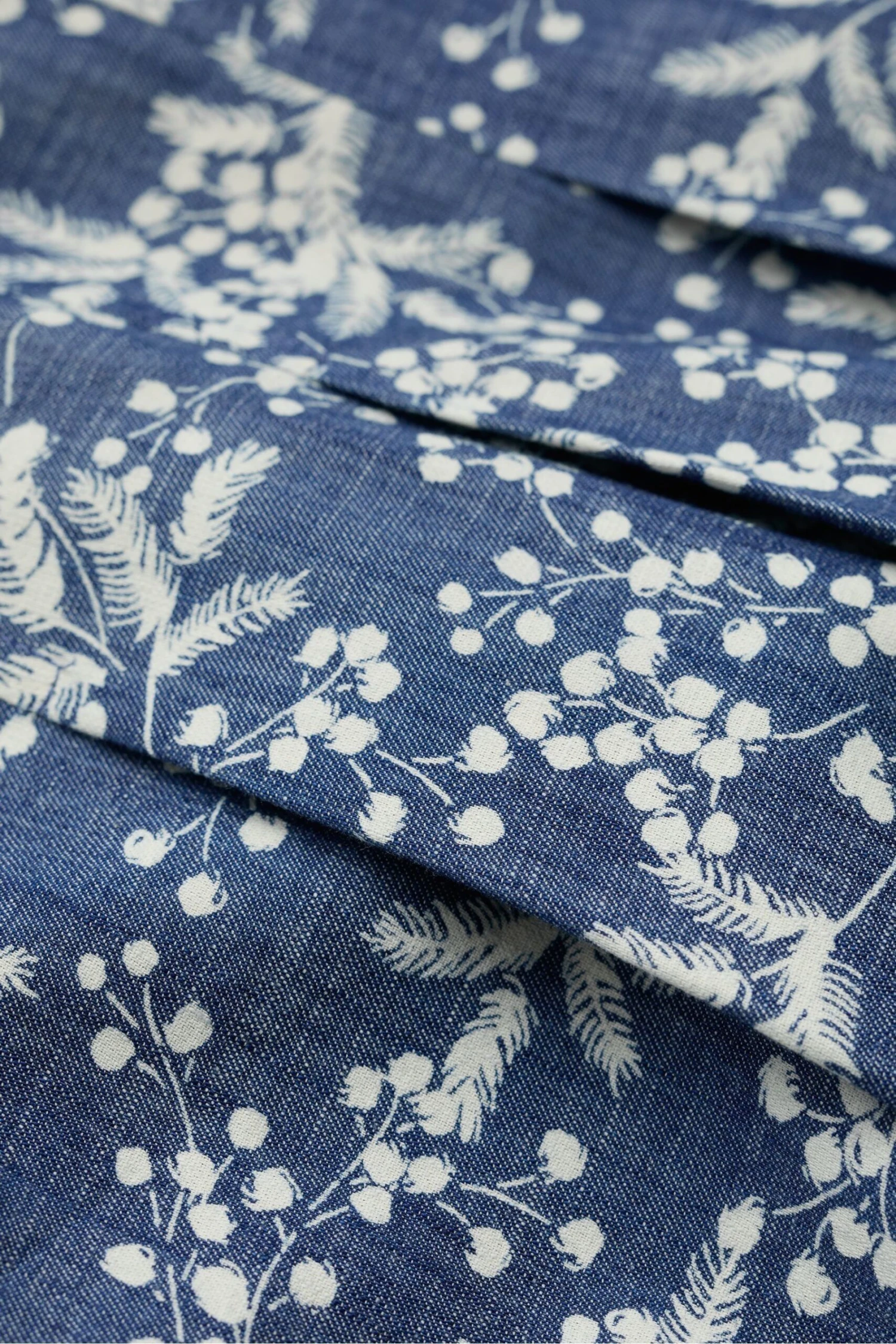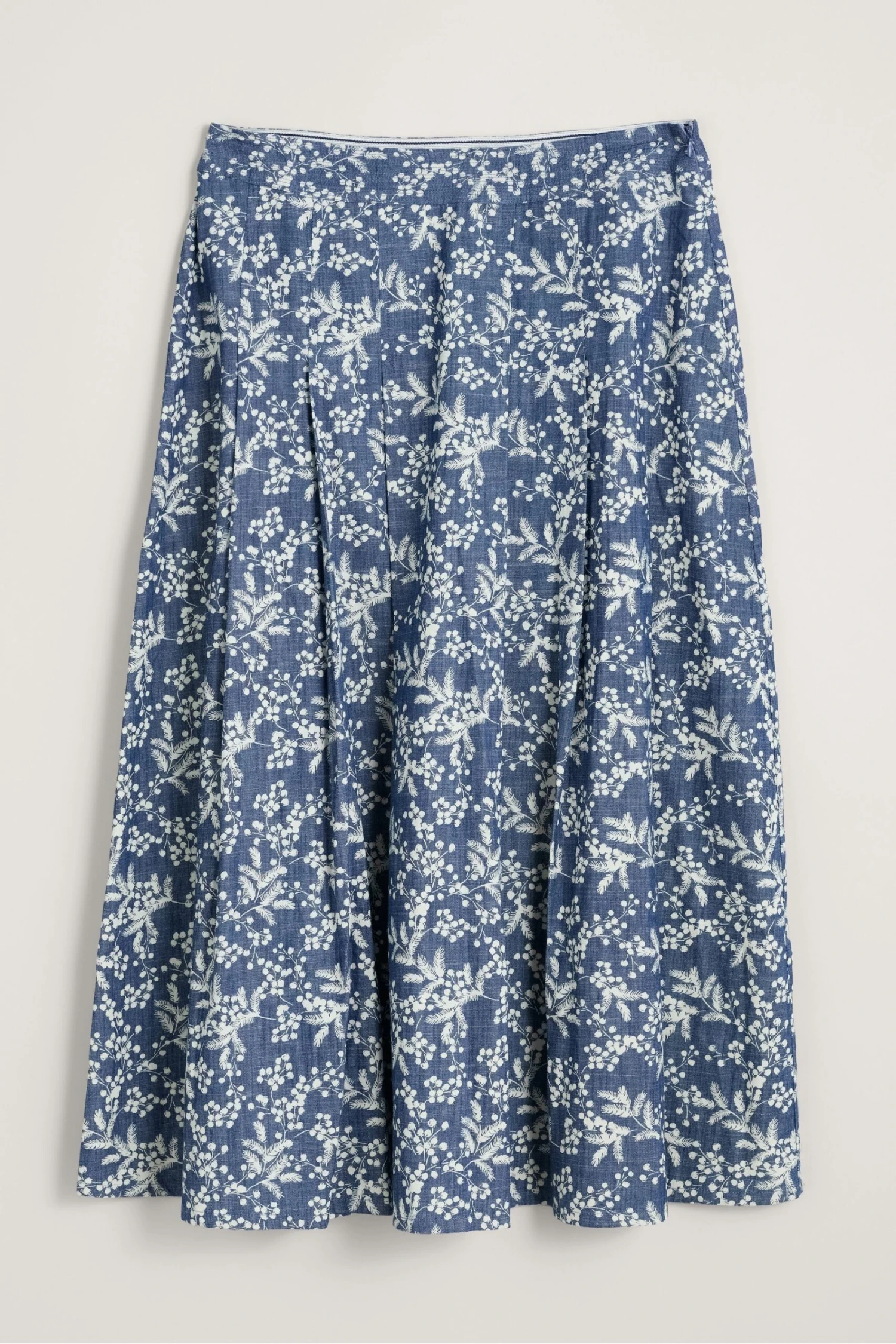 Summer midi skirt in cotton chambray, printed with a tonal floral pattern.
