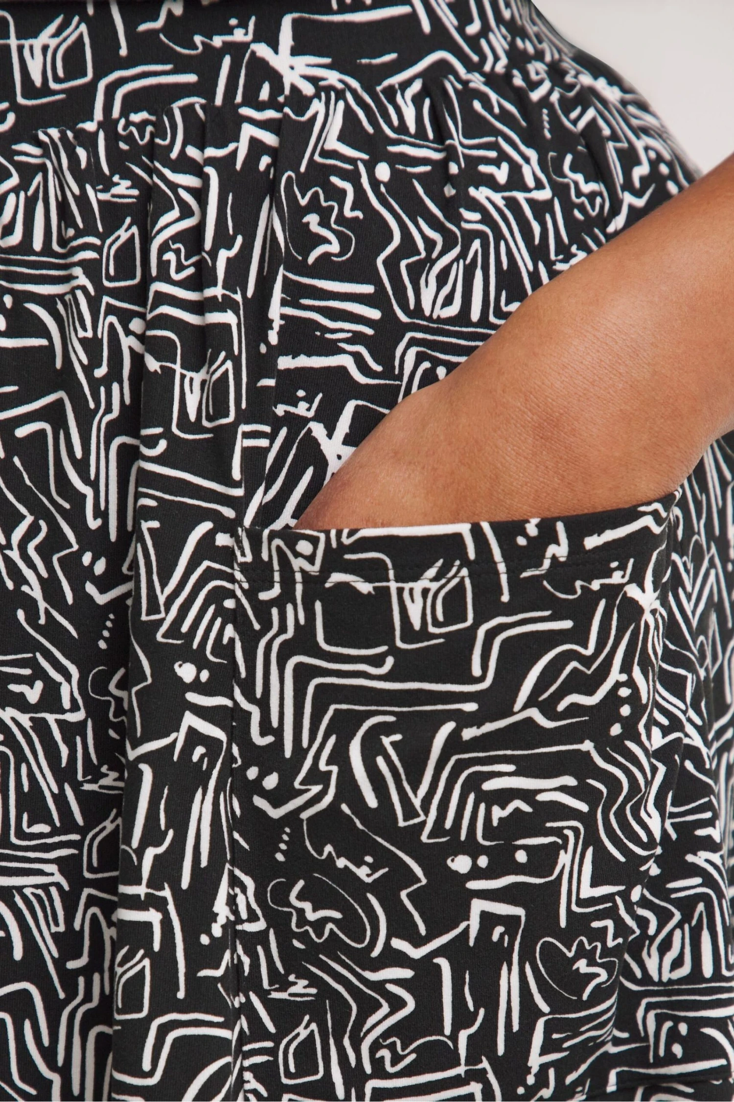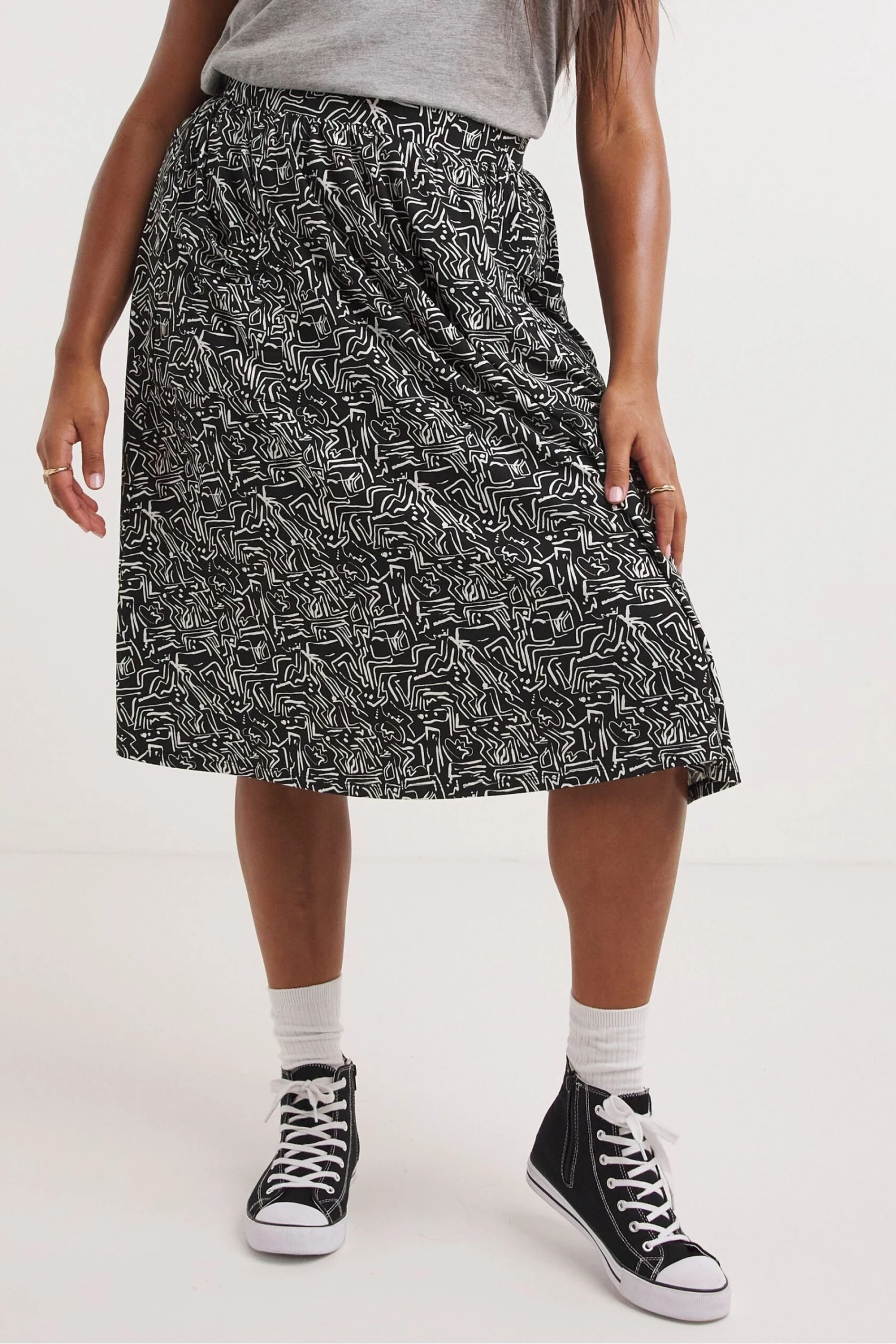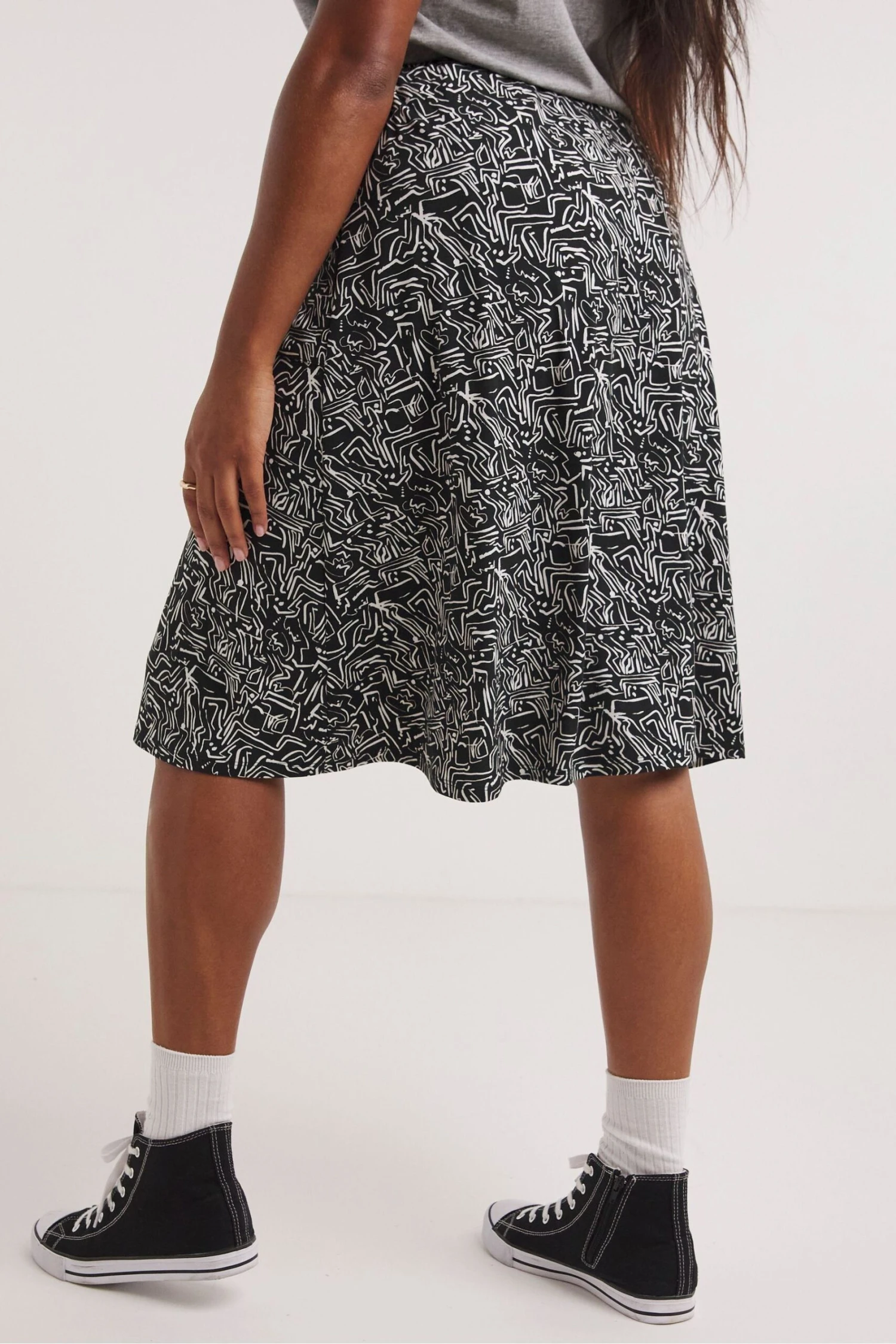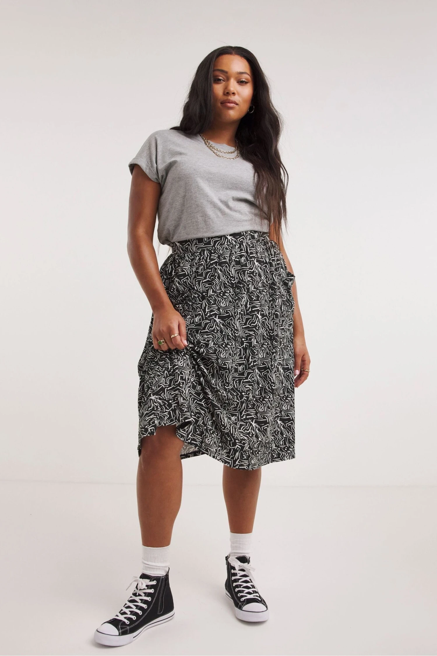 Simply Be Black Print Print Supersoft Jersey Pocket Midi Skirt
