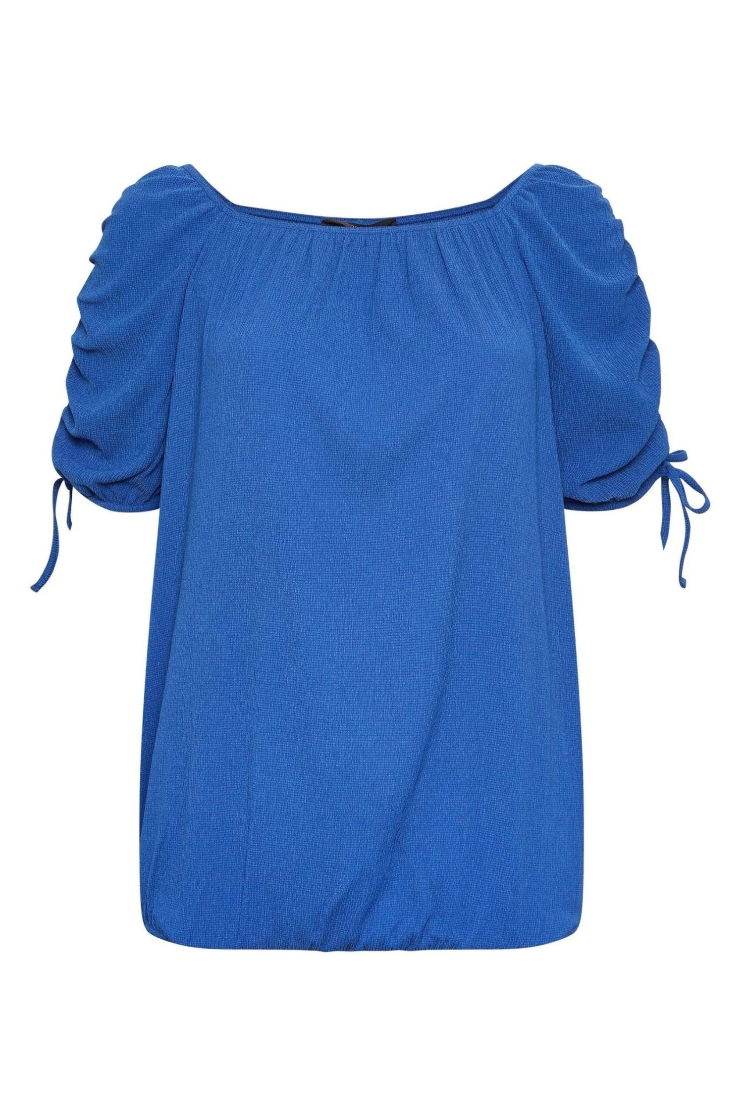 Introduce this must-have textured top into your new season collection. Made from a comfortable jersey fabric it features a square neckline with short ruched sleeves and a bubble hemline. Team with jeans and heels for an effortless weekend look. Why We Love It: The perfect jeans a nice top combo.